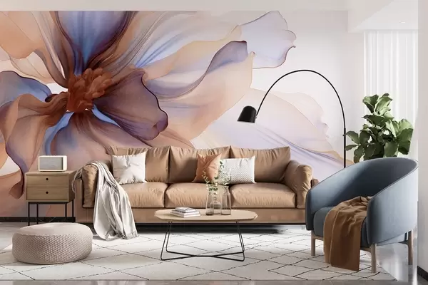 Fototapet Floare mare, detaliată, cu textură, cu petale albe, albastre și maro, pe fond alb Nr. w09498