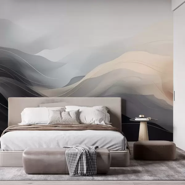 Fototapet Valuri abstracte, încețoșate, în tonuri de gri-crem, cu linii galbene Nr. w09504