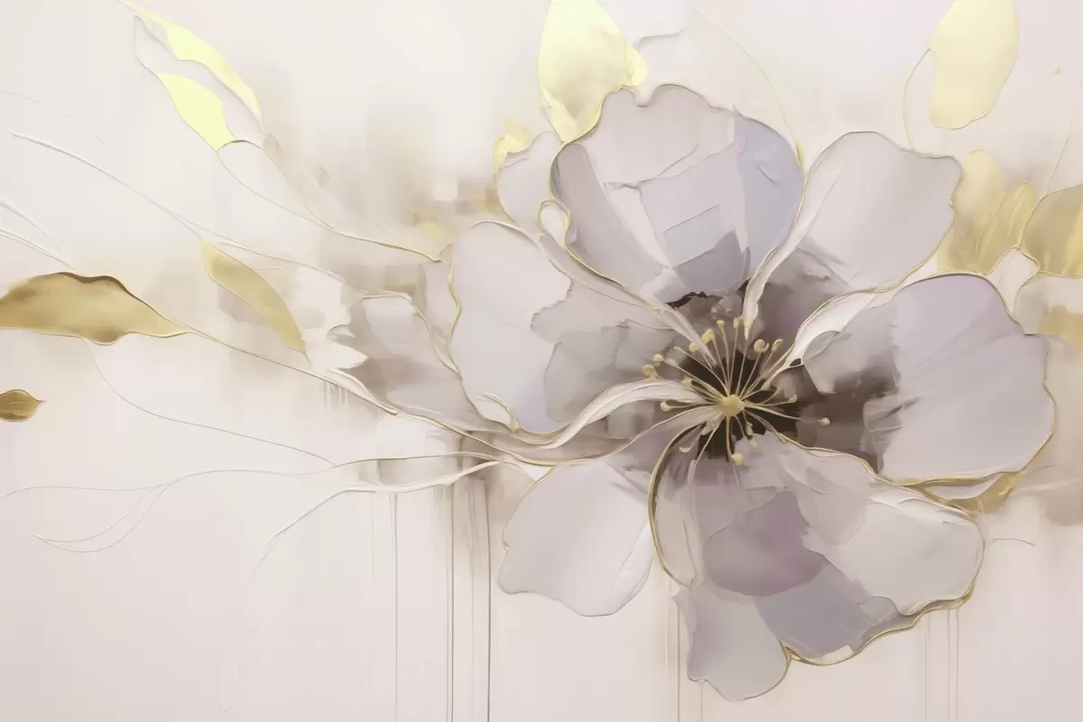 Fototapet Floare albastră cu accente galbene într-un stil abstract, realizată cu pensula Nr. w09505
