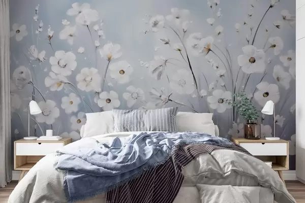 Fototapet Flori albe pe fundalul cerului albastru în stilul picturii în ulei Nr. w09516