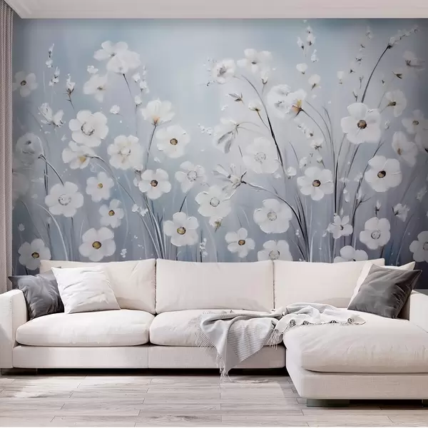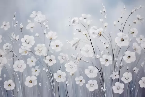 Fototapet Flori albe pe fundalul cerului albastru în stilul picturii în ulei Nr. w09516