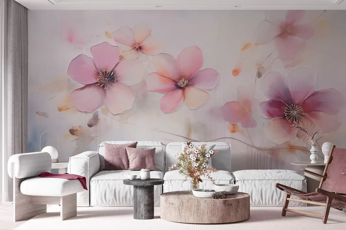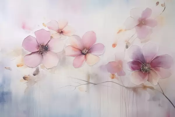 Fototapet Ramură cu flori roz în stil acuarelă Nr. w09522
