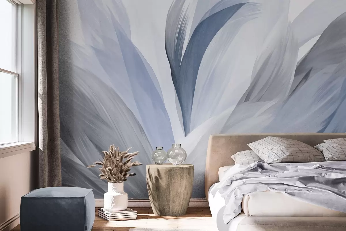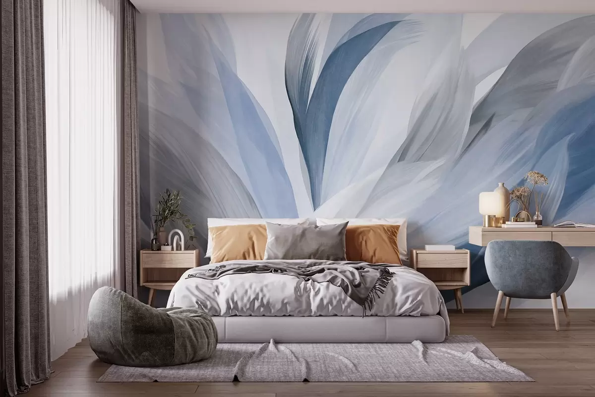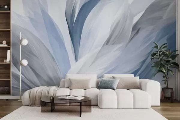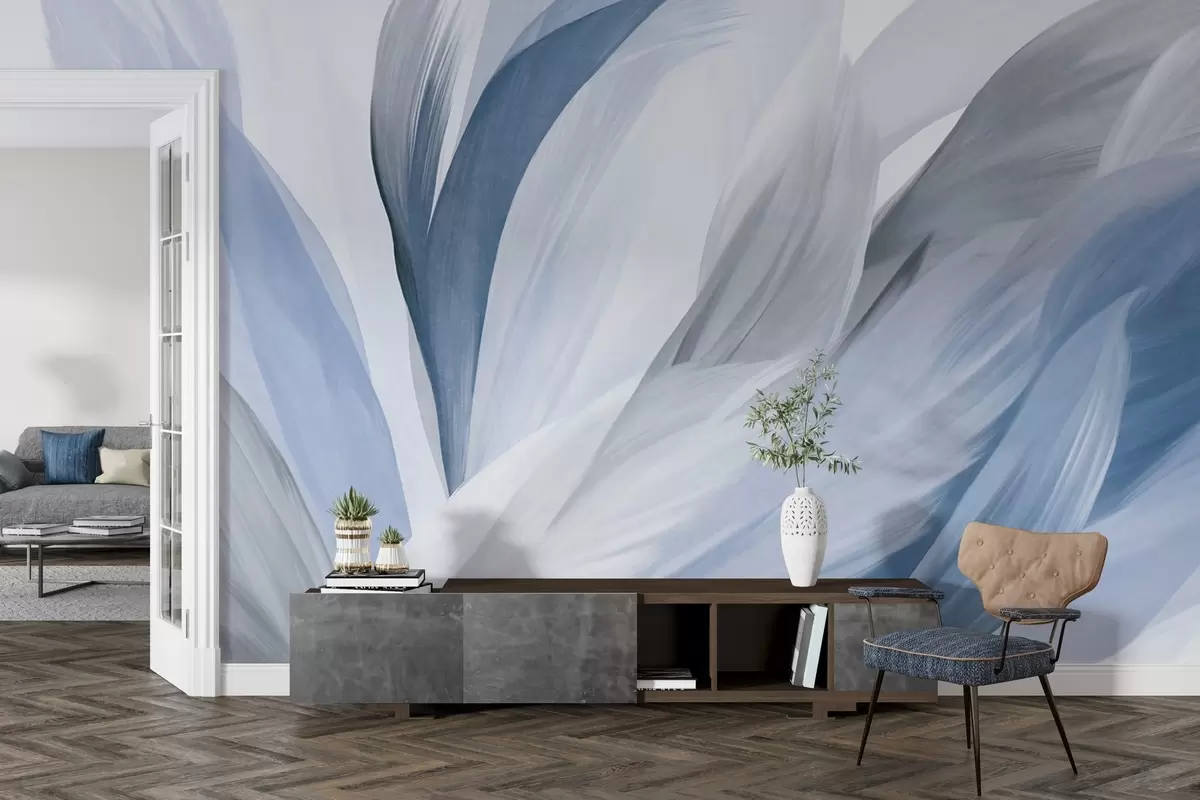 Fototapet Pene abstracte texturate în albastru, alb și gri și diverse nuanțe, suprapuse pe un fundal alb Nr. w09531v1