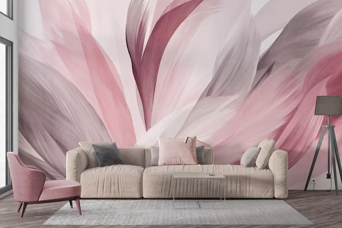 Fototapet Pene abstracte texturate în roz, alb și gri și diverse nuanțe, suprapuse pe un fundal alb Nr. w09531v2