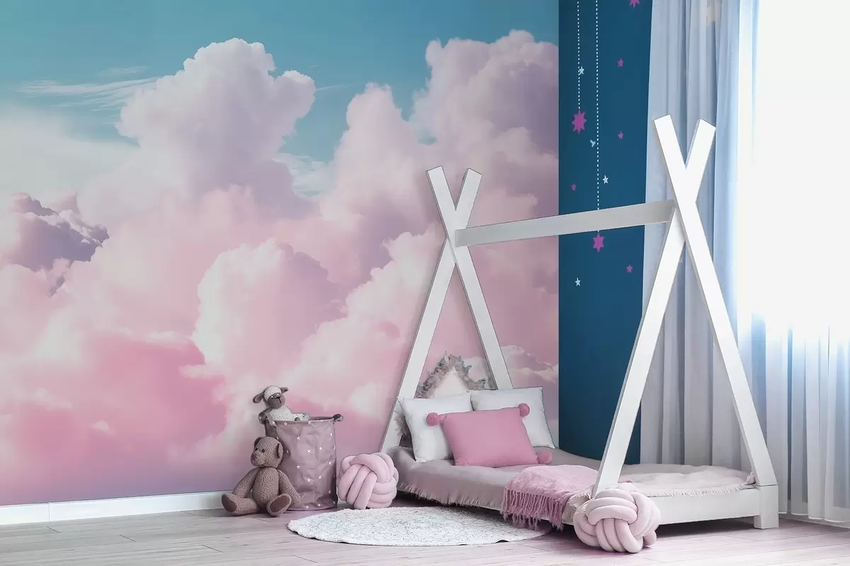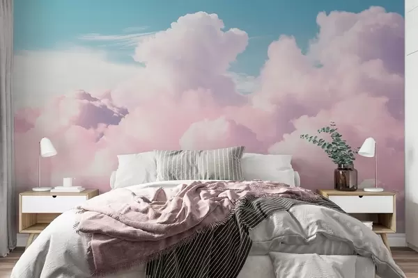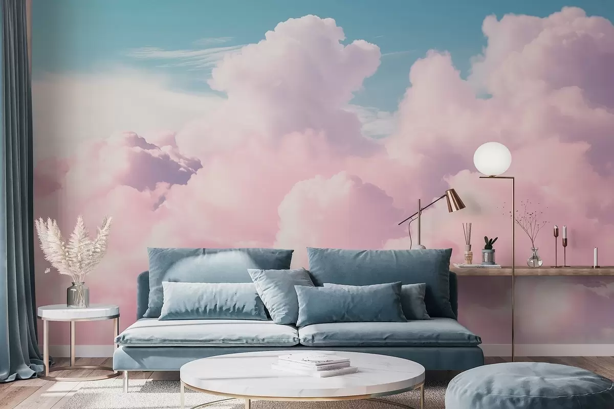 Fototapet Nori moi și aerisiți, de culoare roz, pe un cer albastru Nr. w09569