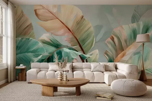 Fototapet Frunze delicate de bananier tropical în nuanțe pastelate de galben-verde Nr. w09581