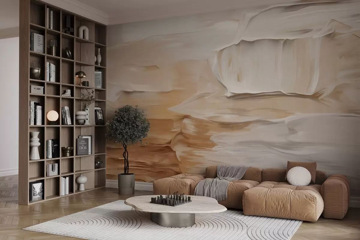 Fototapet Imitare de pensule abstracte texturate în tonuri calde de bej, crem și maro, artă modernă Nr. w09588