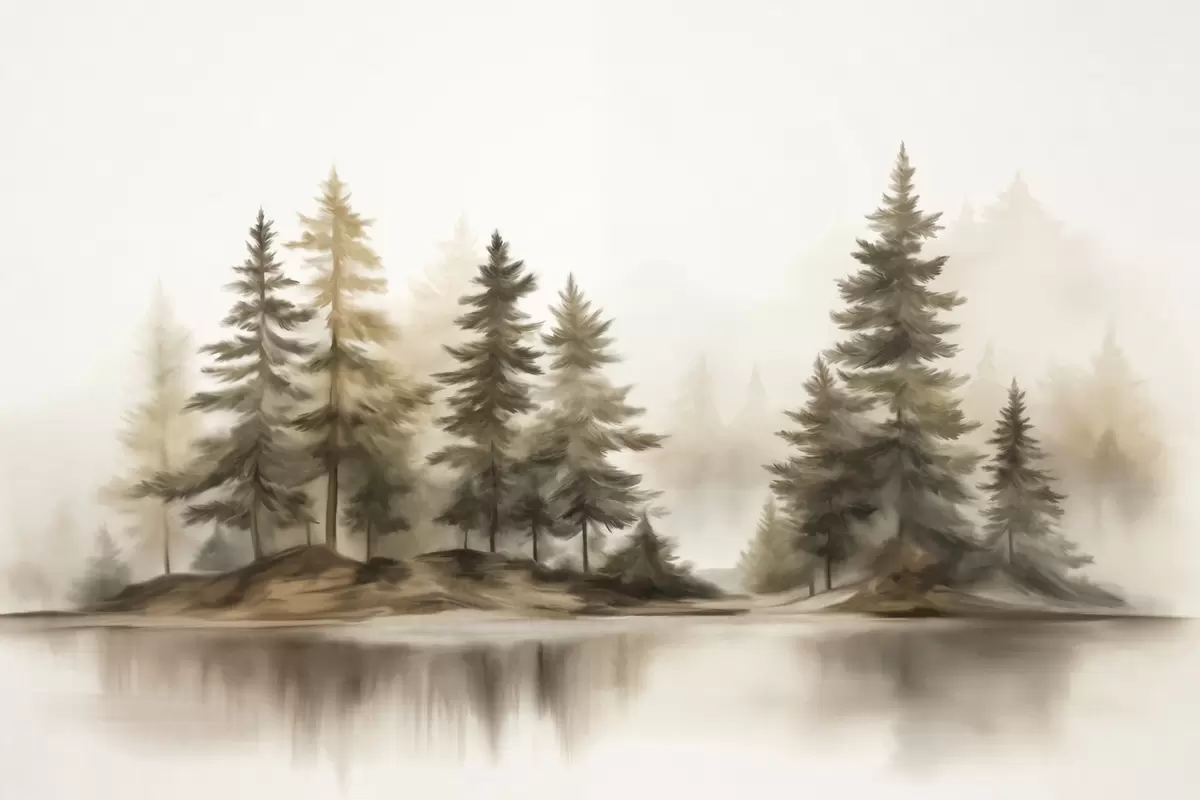 Fototapet O pădure încețoșată, cu textură, cu pini înalți, pictată în stil imitație Nr. w09610