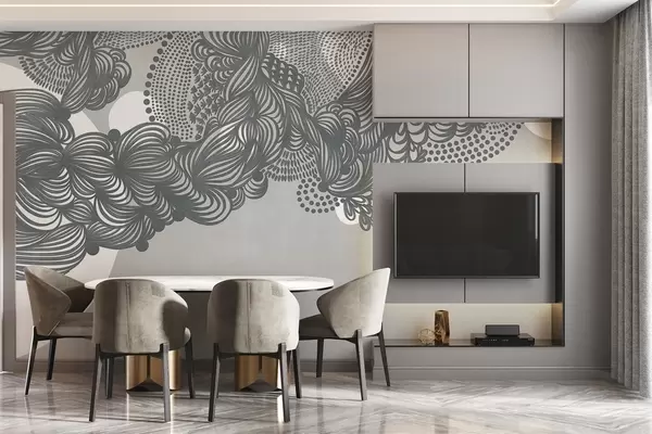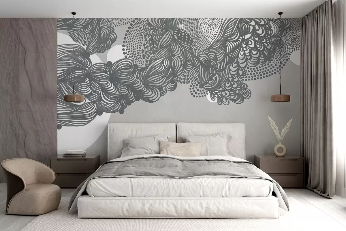 Fototapet Design abstract texturat pe fundal gri, cu linii complexe și texturi punctate Nr. w09621v1