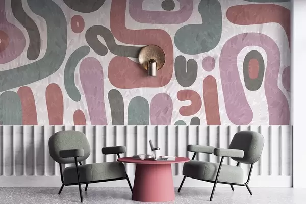 Fototapet Forme abstracte texturate în tonuri discrete de roz, verde și gri, pe un fundal texturat, artă modernă Nr. w09622