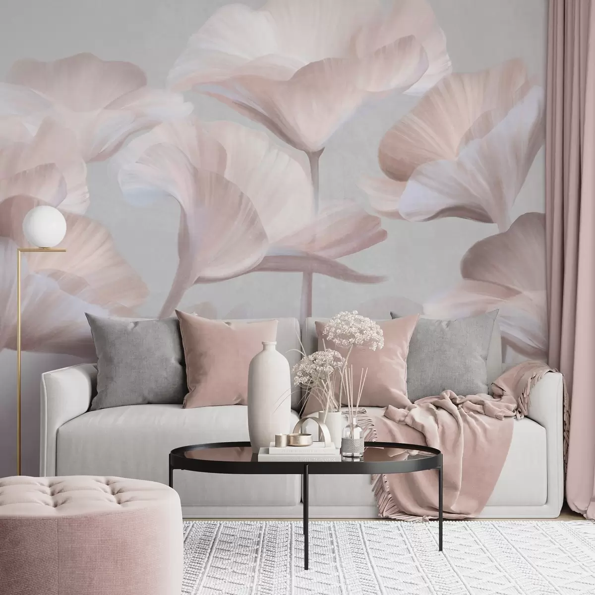 Fototapet Flori de lotus translucide, de culoare piersică pal, cu textură și petale delicate, pe un fundal gri discret Nr. w09640