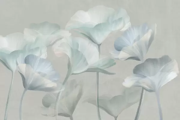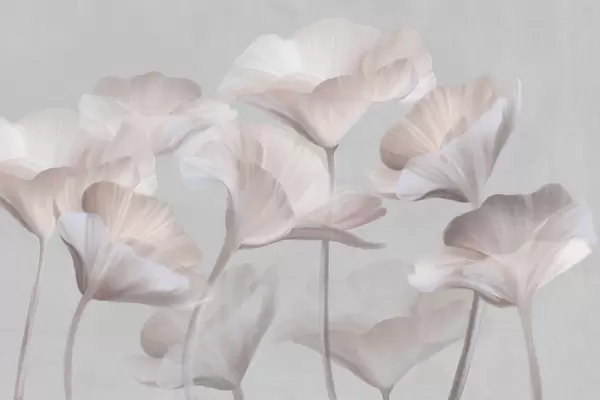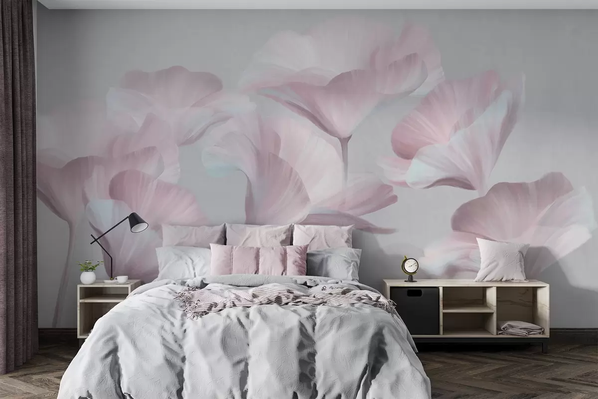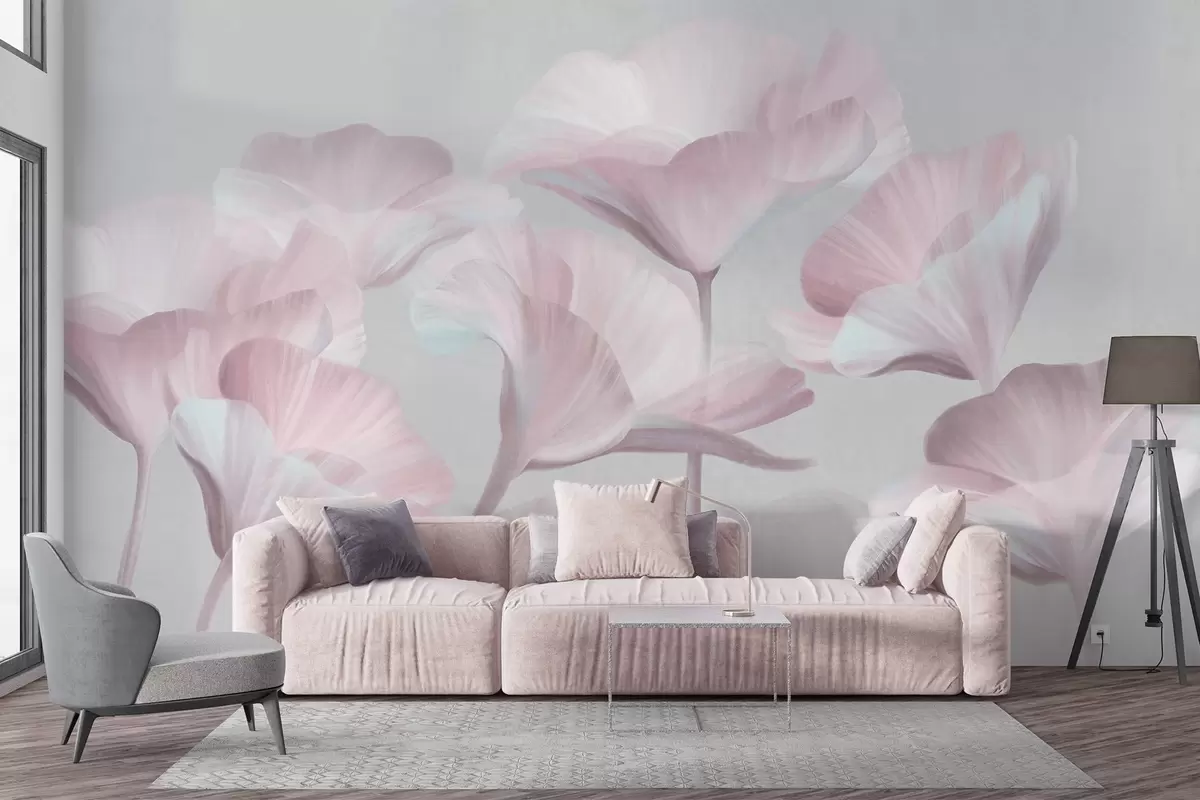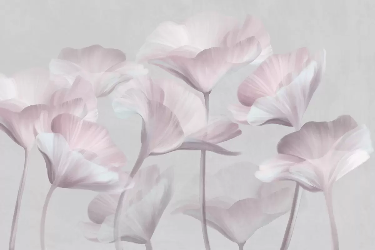 Fototapet Flori de lotus translucide, de culoare roz pal, cu textură și petale delicate, pe un fundal gri discret Nr. w09640v1
