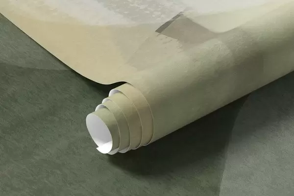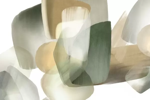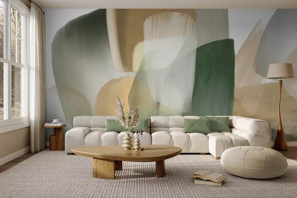 Fototapet Forme abstracte texturate în culori discrete de verde și bej, cu margini moi și straturi suprapuse Nr. w09642