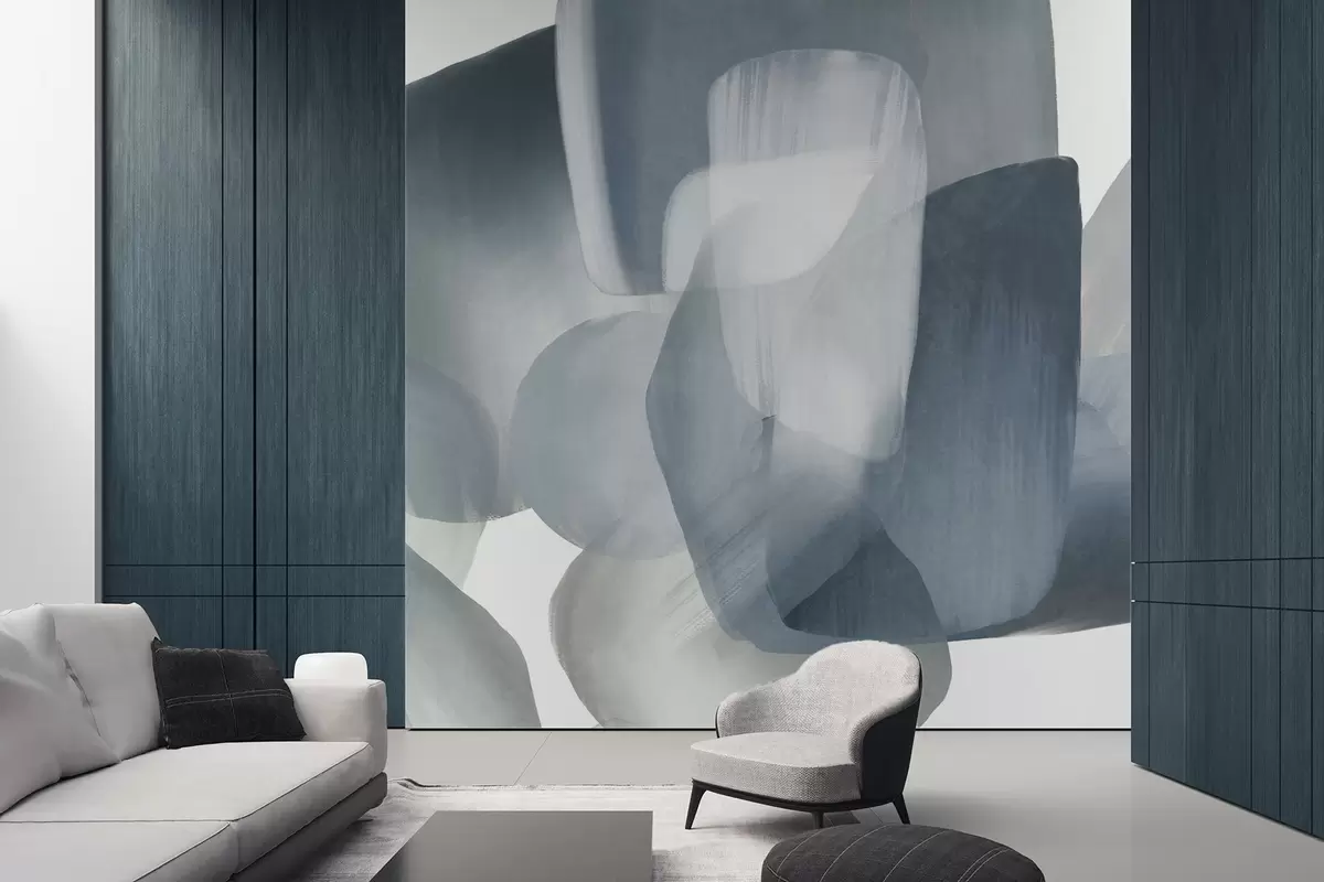 Fototapet Forme abstracte texturate în culori discrete de albastru și gri, cu margini moi și straturi suprapuse Nr. w09642v1
