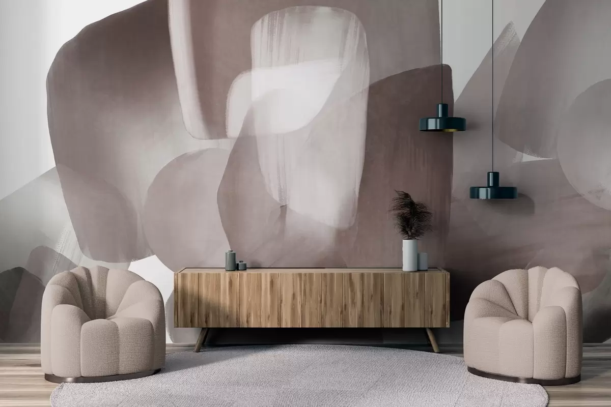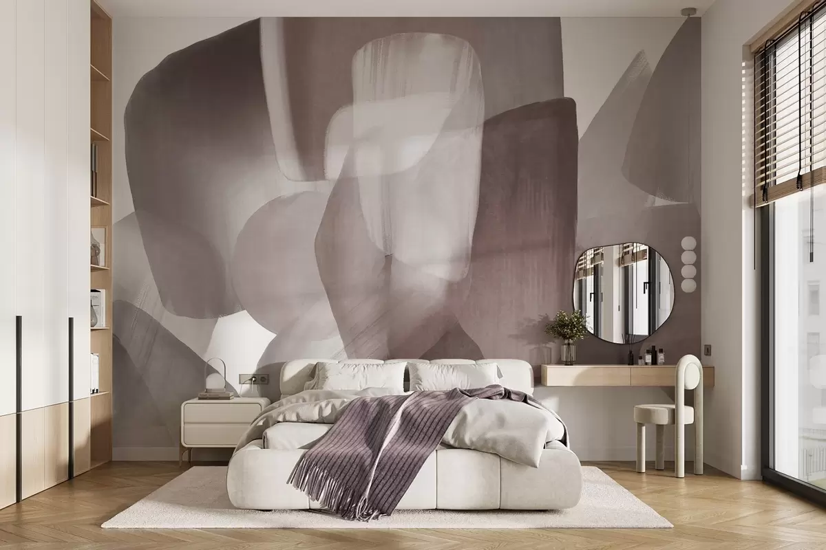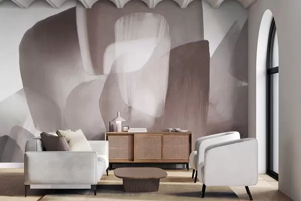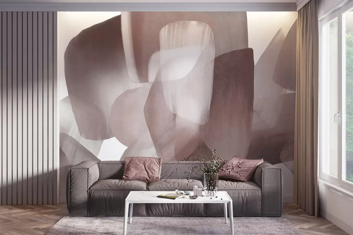 Fototapet Forme abstracte texturate în culori burgund și gri discrete, cu margini moi și straturi suprapuse Nr. w09642v2