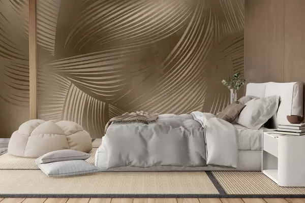 Fototapet Imprimare abstractă cu linii curbe, fluide, în nuanțe de maro închis, care creează un efect texturat, de artă modernă. Nr. w09646