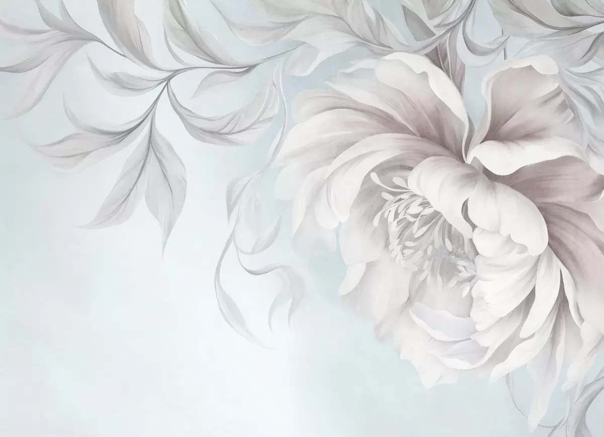 Fototapet Bujor mare, cu textură, cu petale delicate și frunze cenușii, pictat într-un stil delicat Nr. w09647v1