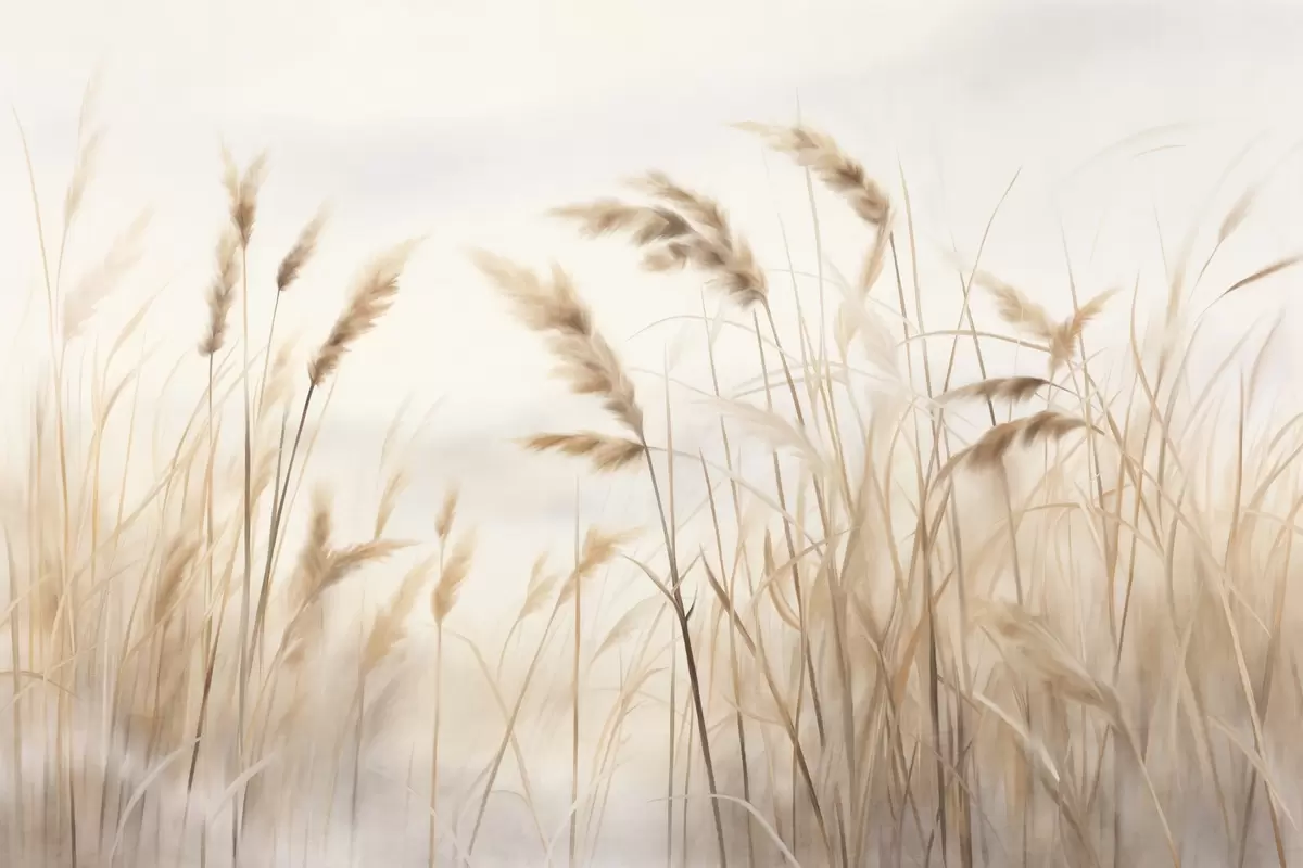 Fototapet Iarbă uscată, înaltă, cu textură, cu spice de grâu în câmp, pe un fundal moale, pal Nr. w09648
