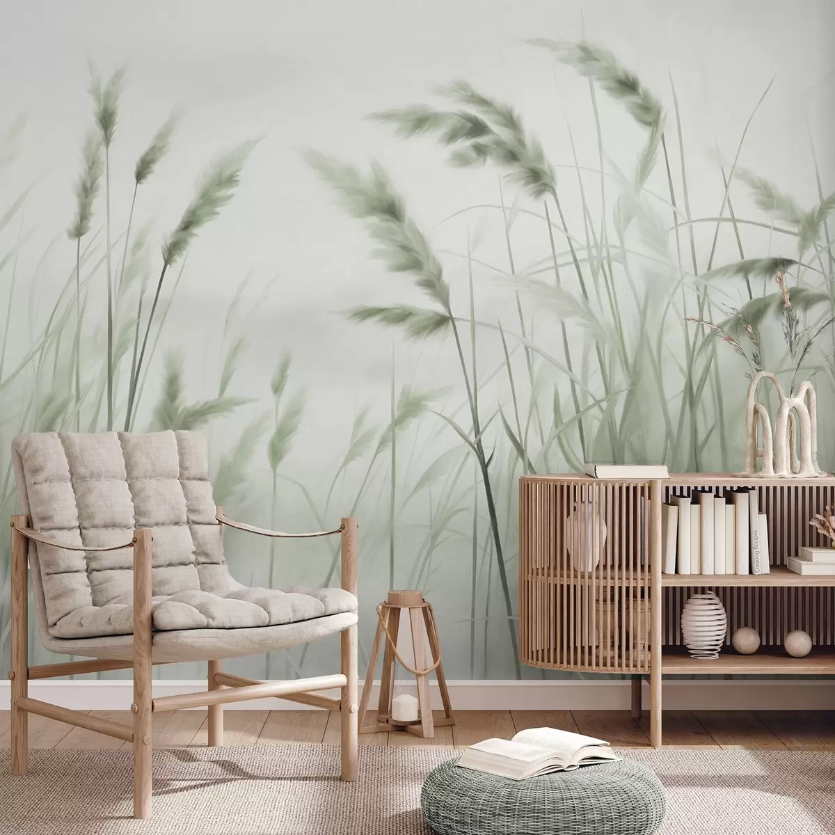 Fototapet Iarbă uscată, înaltă, cu textură, cu spice de grâu în câmp, pe un fundal moale, pal Nr. w09648v1