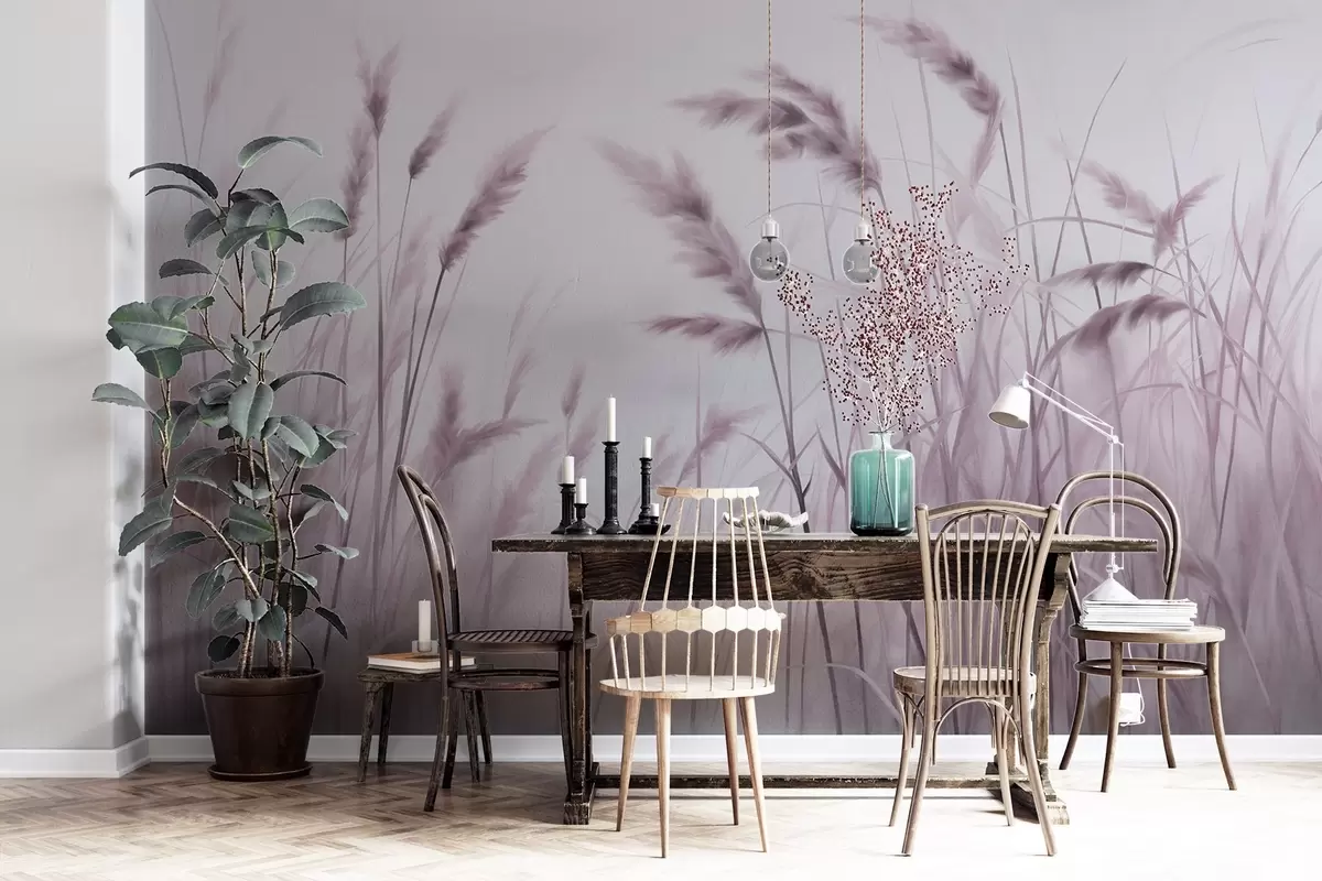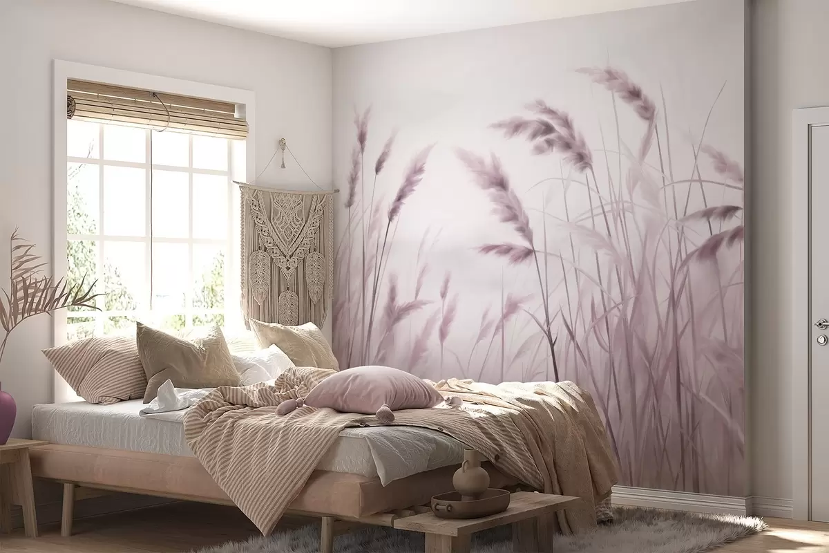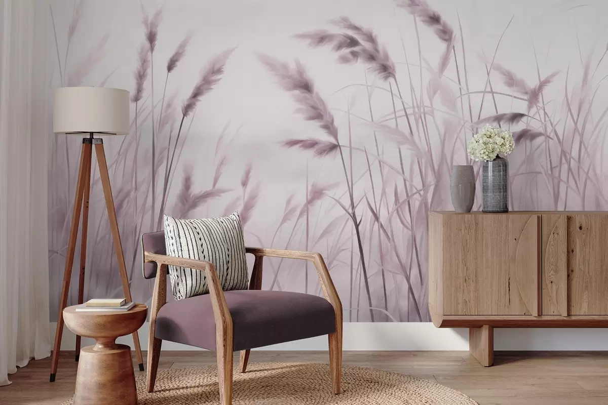 Fototapet Iarbă uscată, înaltă, cu textură, cu spice de grâu în câmp, pe un fundal moale, pal Nr. w09648v2