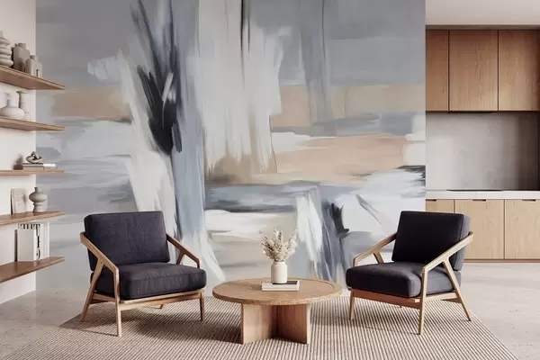 Fototapet Stil pictural abstract texturat, cu tușe de pensulă în nuanțe de alb, gri și bej Nr. w09651