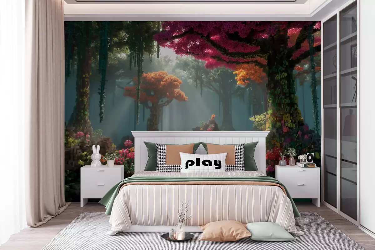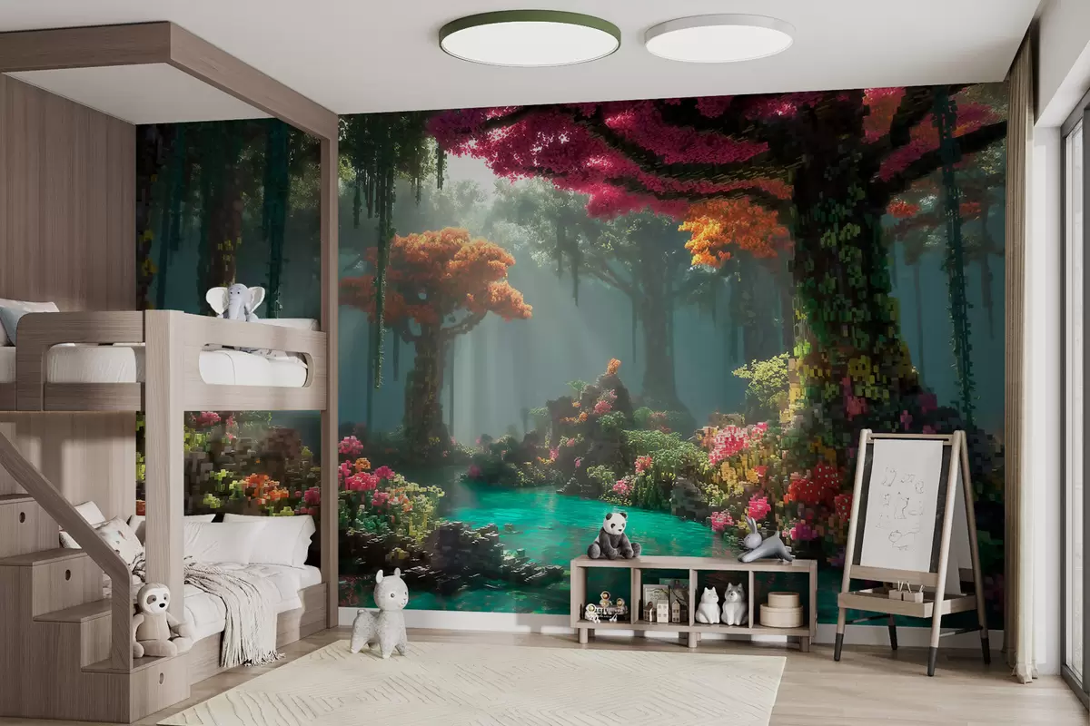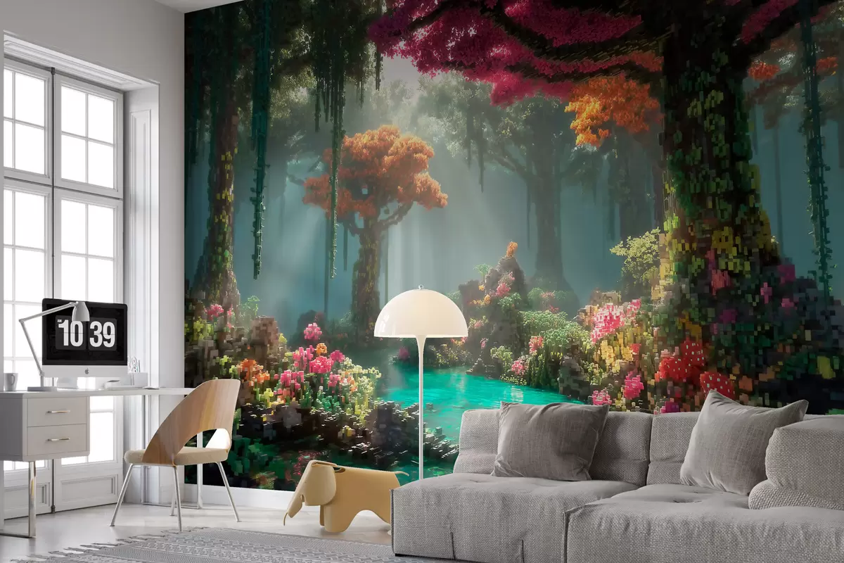 Fototapet O pădurice fermecată din pixeli, inspirată din jocurile video Nr. w09683