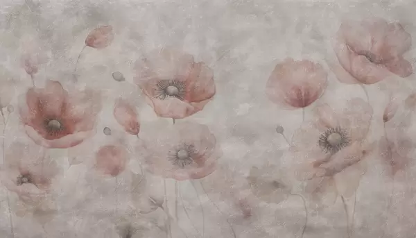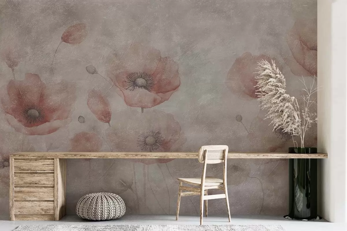 Fototapet Flori mari de mac pe un perete cu efect antic Nr. w09686