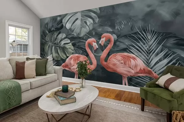Fototapet O pereche de flamingo în plante tropicale Nr. w09687