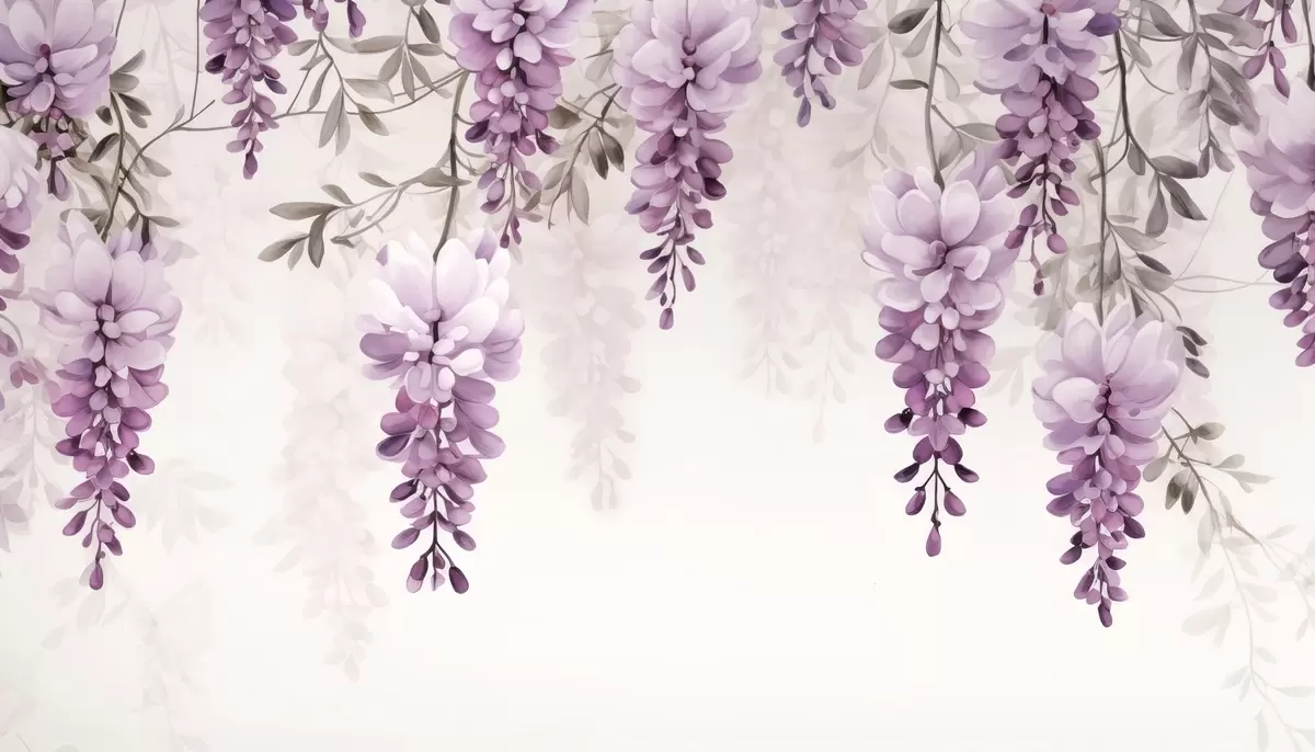 Fototapet Ramuri delicate și mari de lavandă atârnate pe perete, imitație de acuarelă Nr. w09690