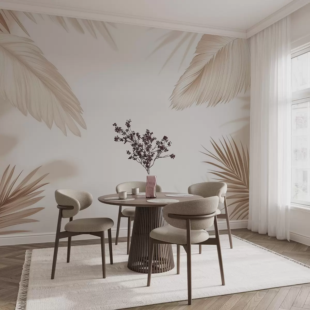Fototapet Decor tropical în nuanțe de bej, cu siluete de frunze de palmier și umbre delicate Nr. w09714