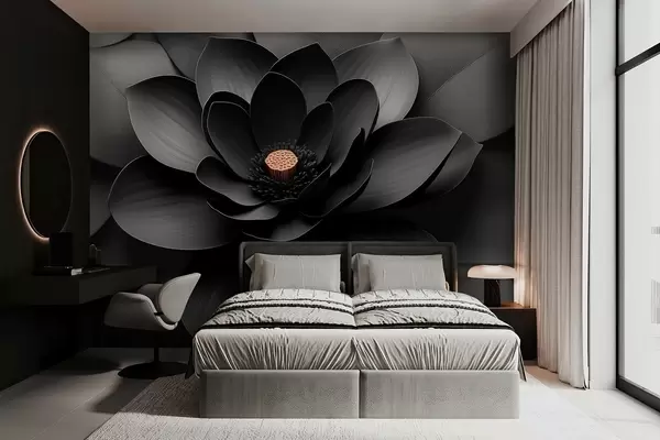 Fototapet O floare neagră minimalistă, cu petale și un centru cald, care contrastează Nr. w09721