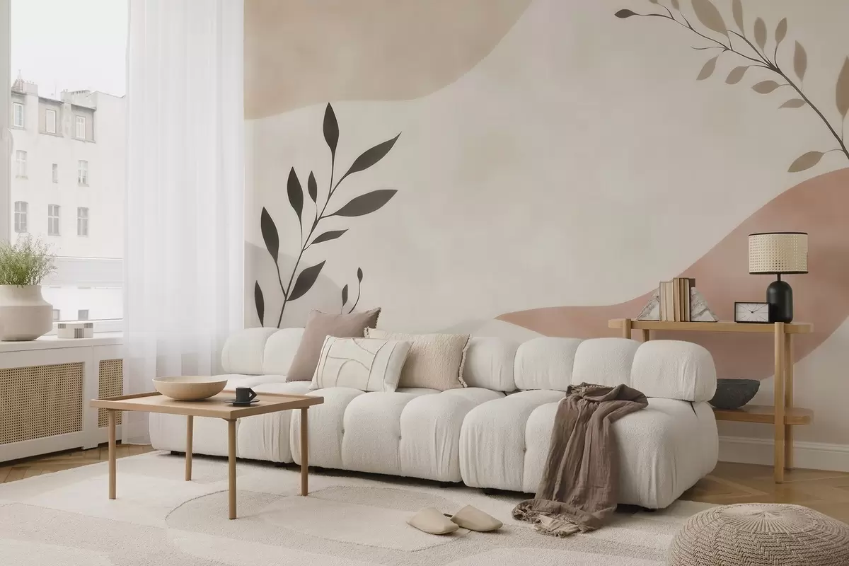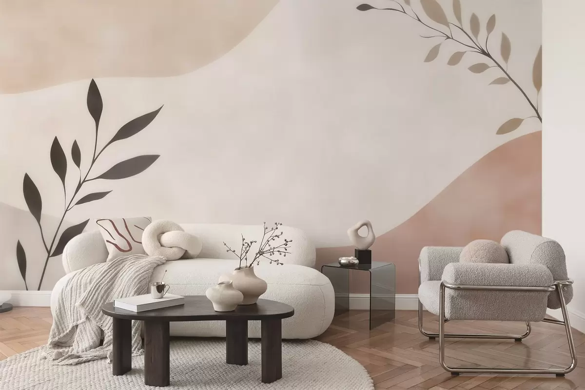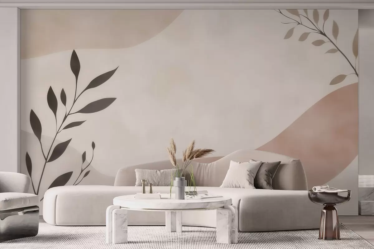 Fototapet Valuri abstracte bej-piersică cu ramuri Nr. w09722