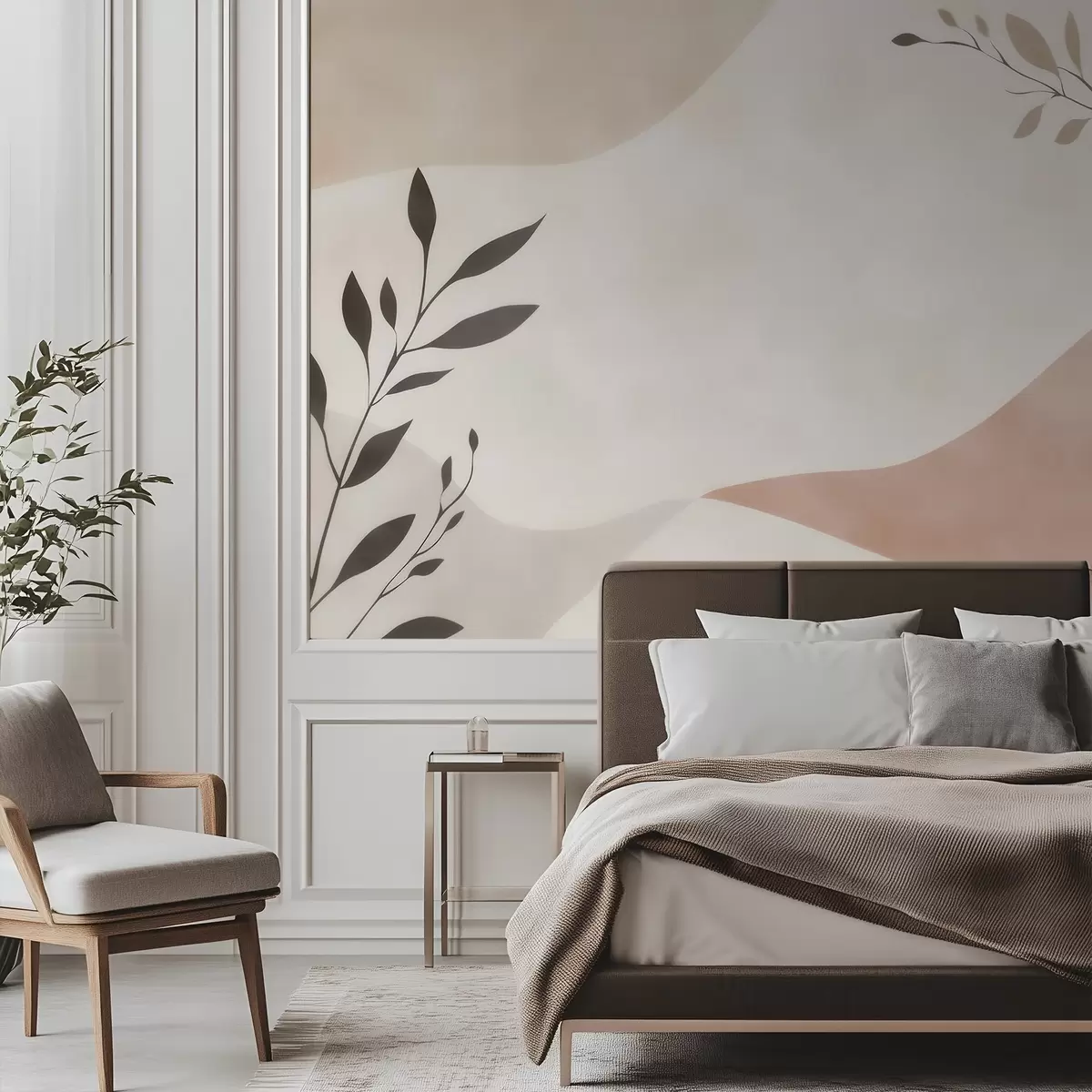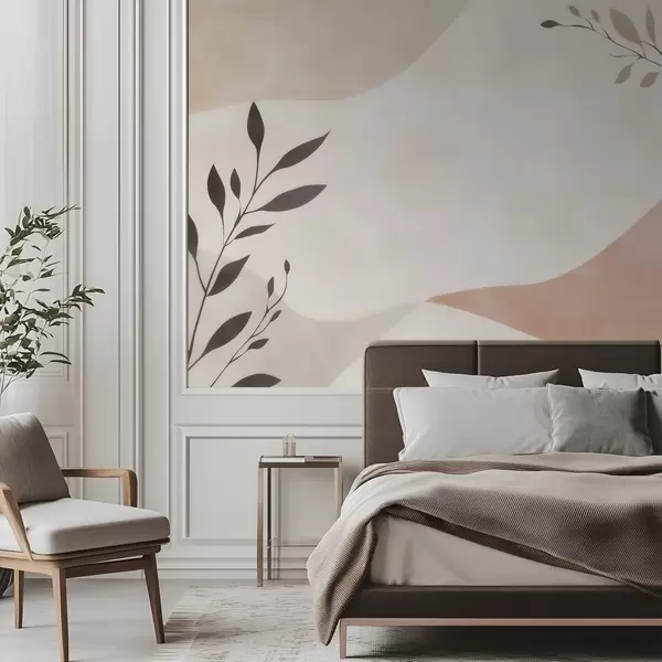 Fototapet Valuri abstracte bej-piersică cu ramuri Nr. w09722