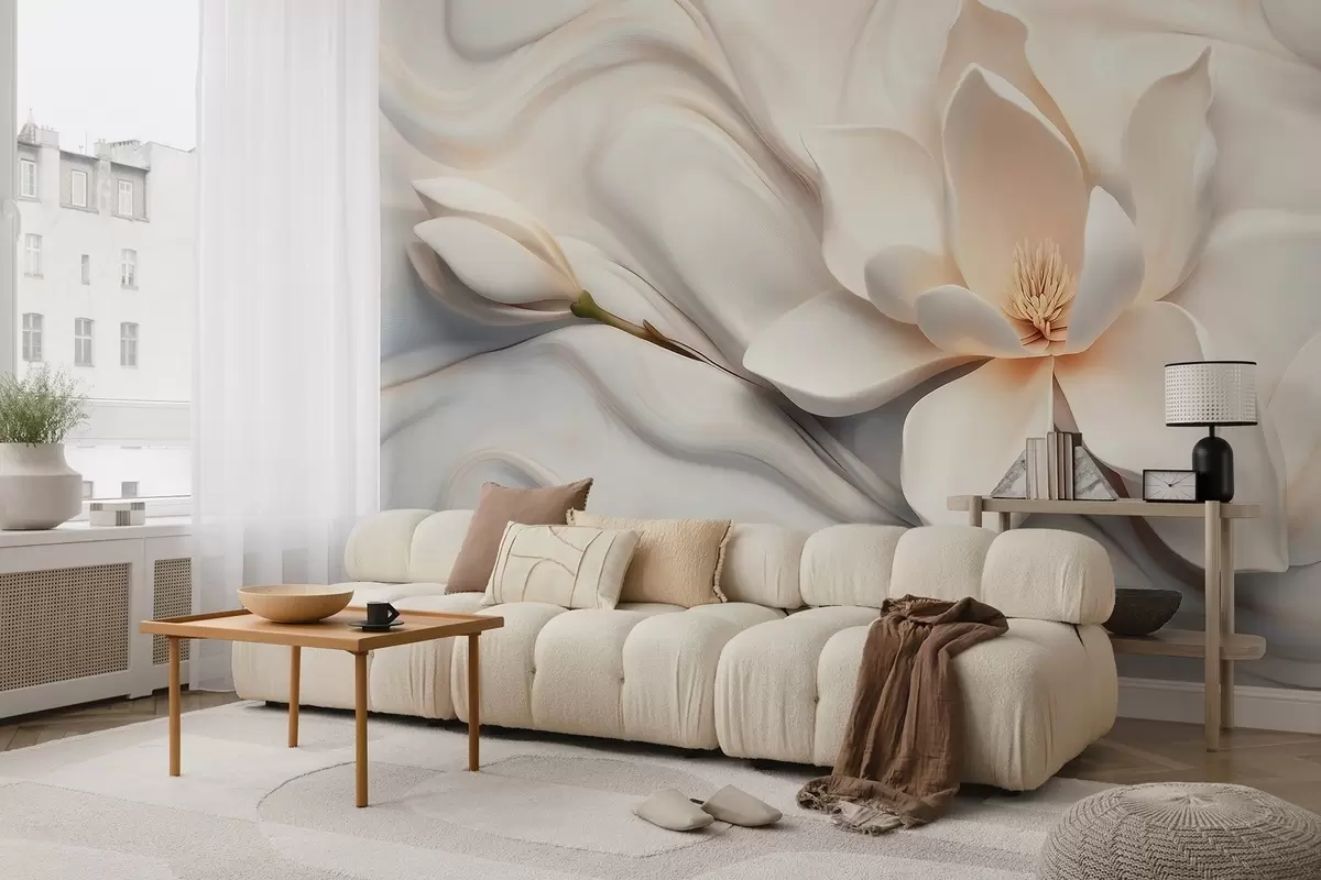 Fototapet Magnolie albă tridimensională cu imitație de textură de marmură în relief Nr. w09729