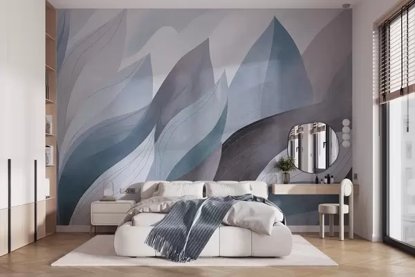 Fototapet Frunze abstracte, nuanțe discrete de albastru cu detalii delicate, textură delicată de acuarelă Nr. w09736v1