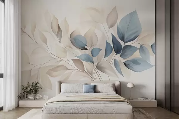 Fototapet Frunze abstracte translucide în nuanțe de albastru, bej și crem, artă texturată Nr. w09744