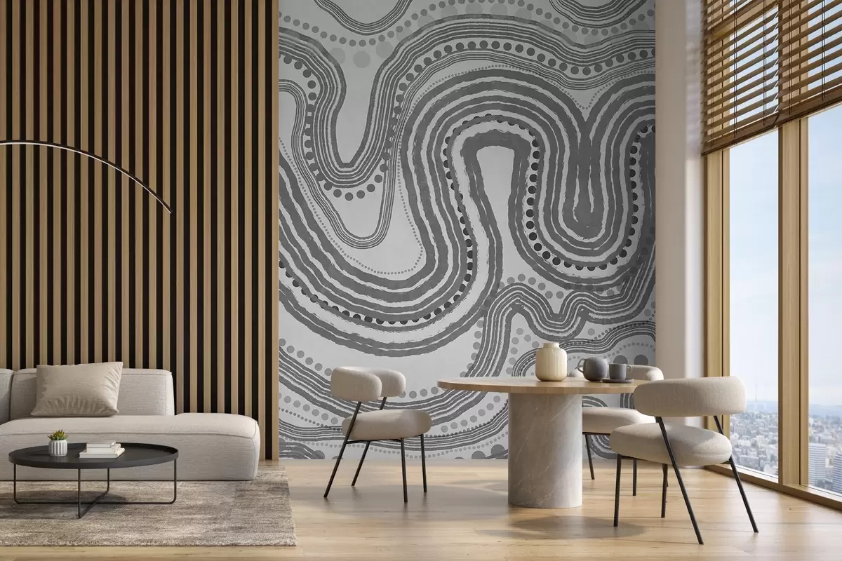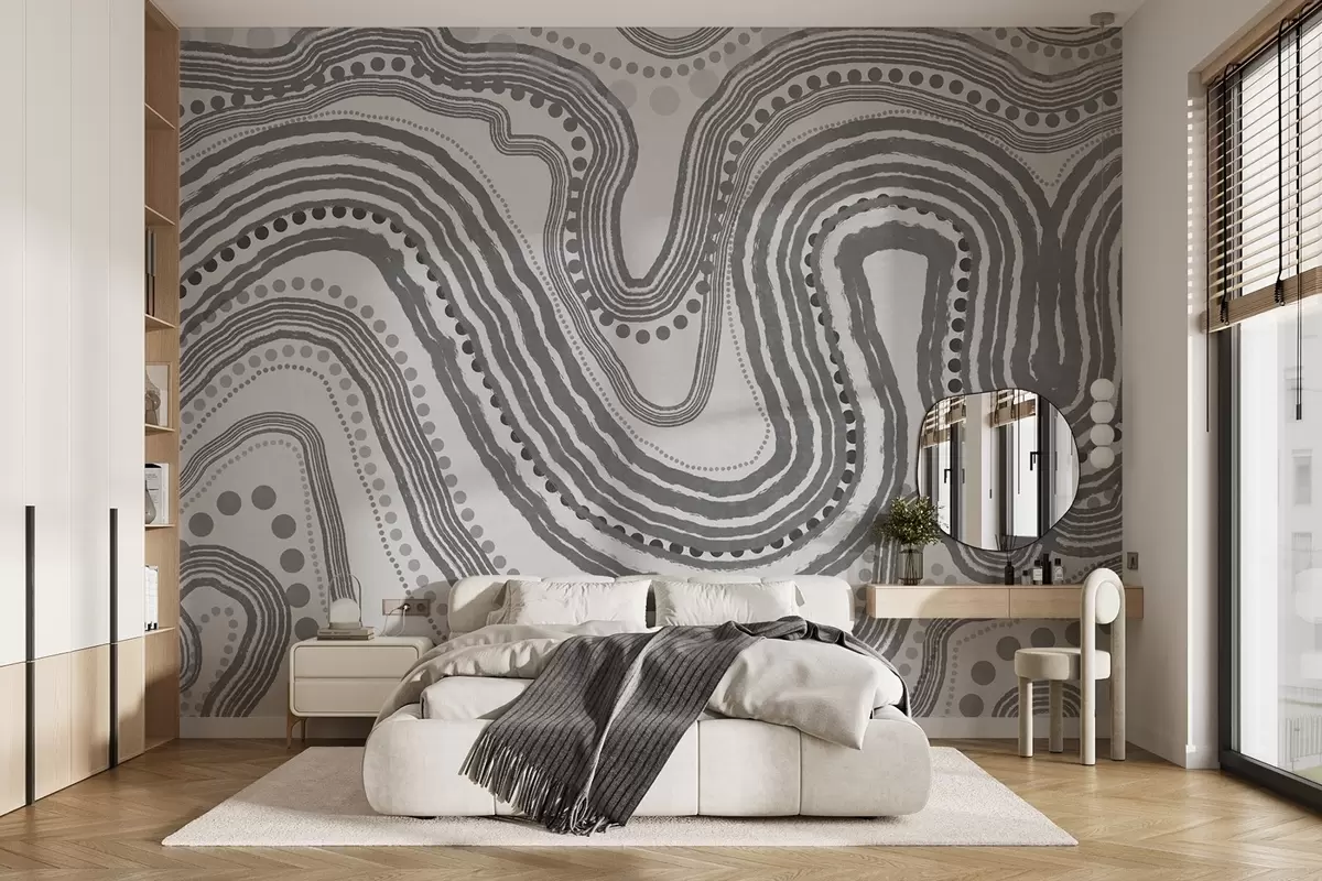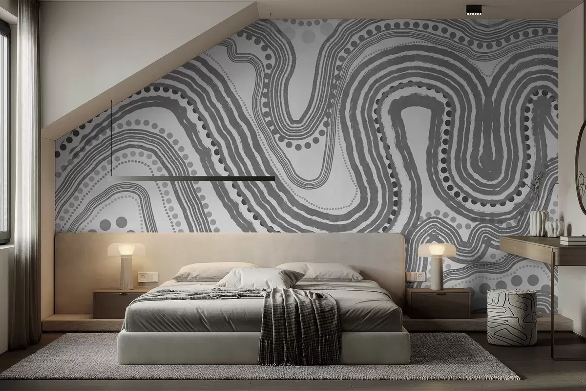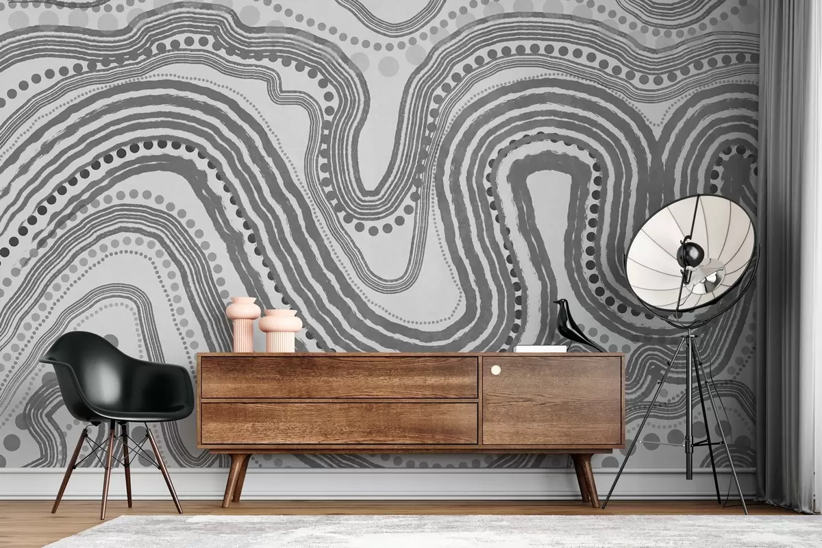Fototapet Linii ondulate și puncte abstracte de culoare gri închis, artă modernă texturată Nr. w09747v2