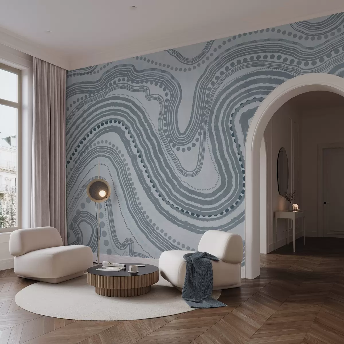 Fototapet Linii și puncte albastre abstracte, artă modernă texturată Nr. w09747v3