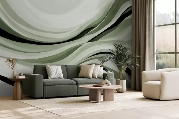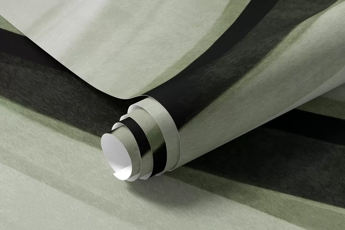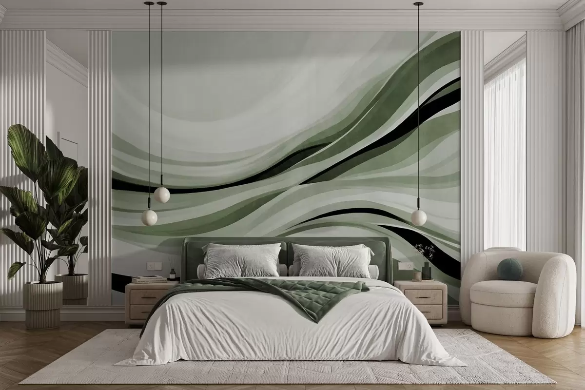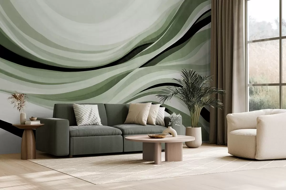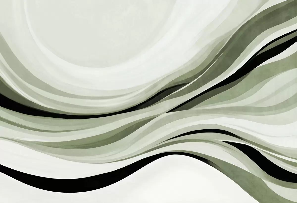 Fototapet Linii abstracte ondulate în nuanțe de verde și negru pe un fundal deschis, artă texturată Nr. w09748v1