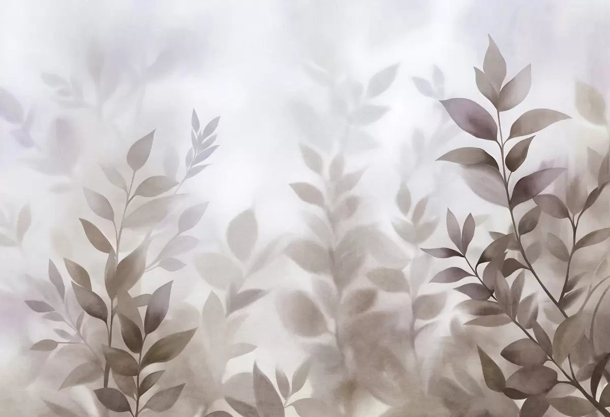 Fototapet Ramuri delicate cu frunze maro și bej discrete, stil pictură în acuarelă, artă texturată Nr. w09750