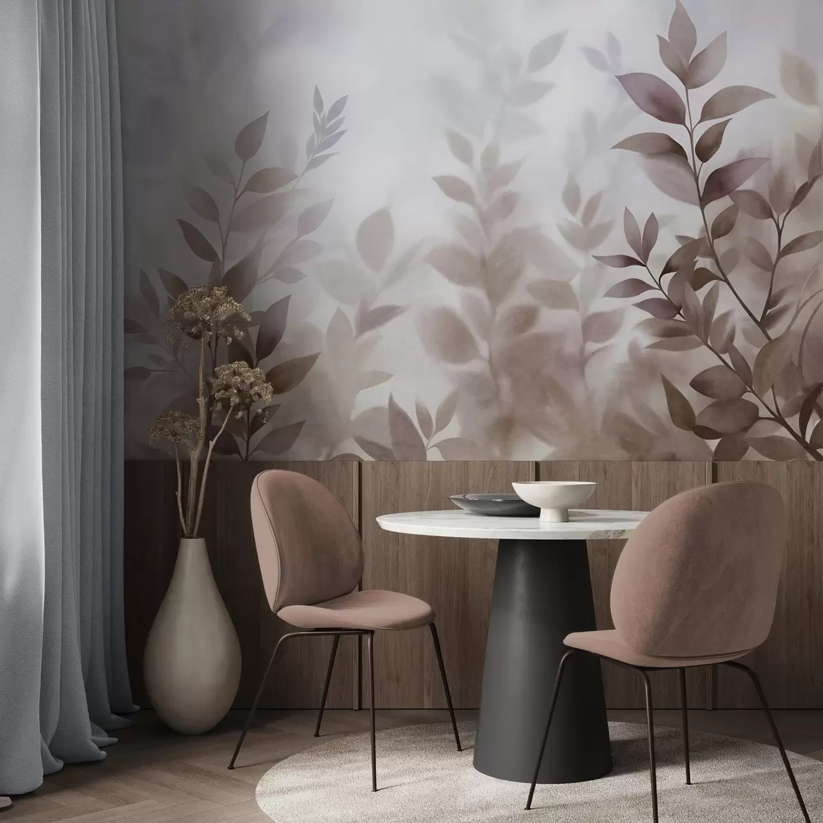 Fototapet Ramuri delicate cu frunze maro și bej discrete, stil pictură în acuarelă, artă texturată Nr. w09750