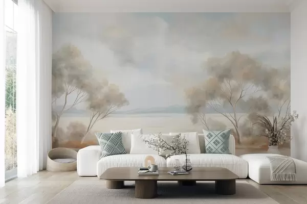 Fototapet Un stil de pictură cu textură peisagistică, cu copaci sub un cer înnorat Nr. w09753