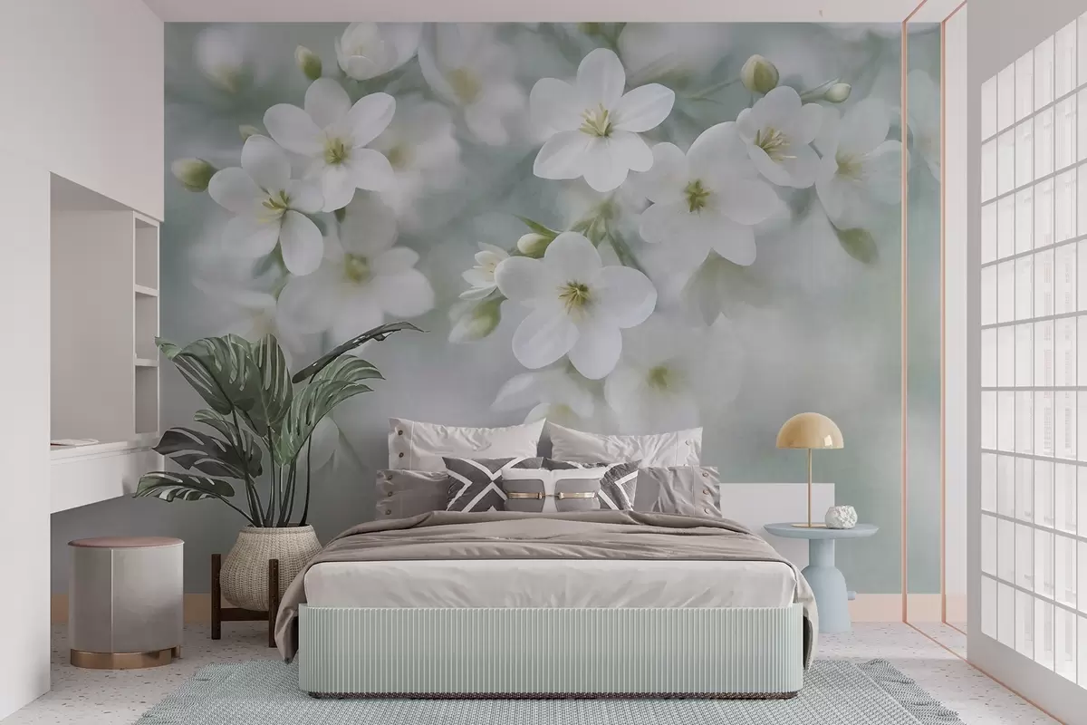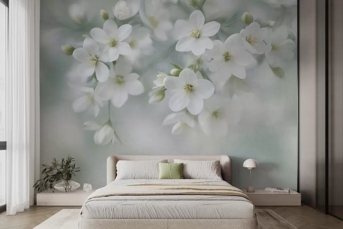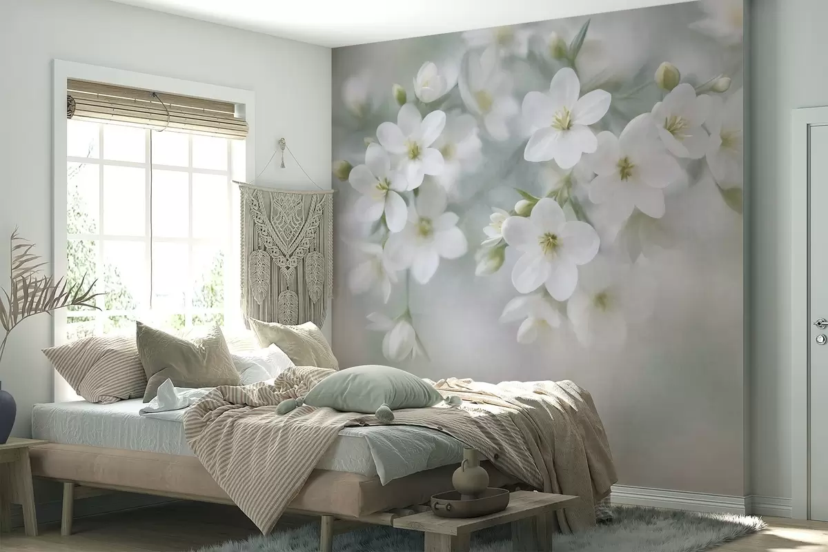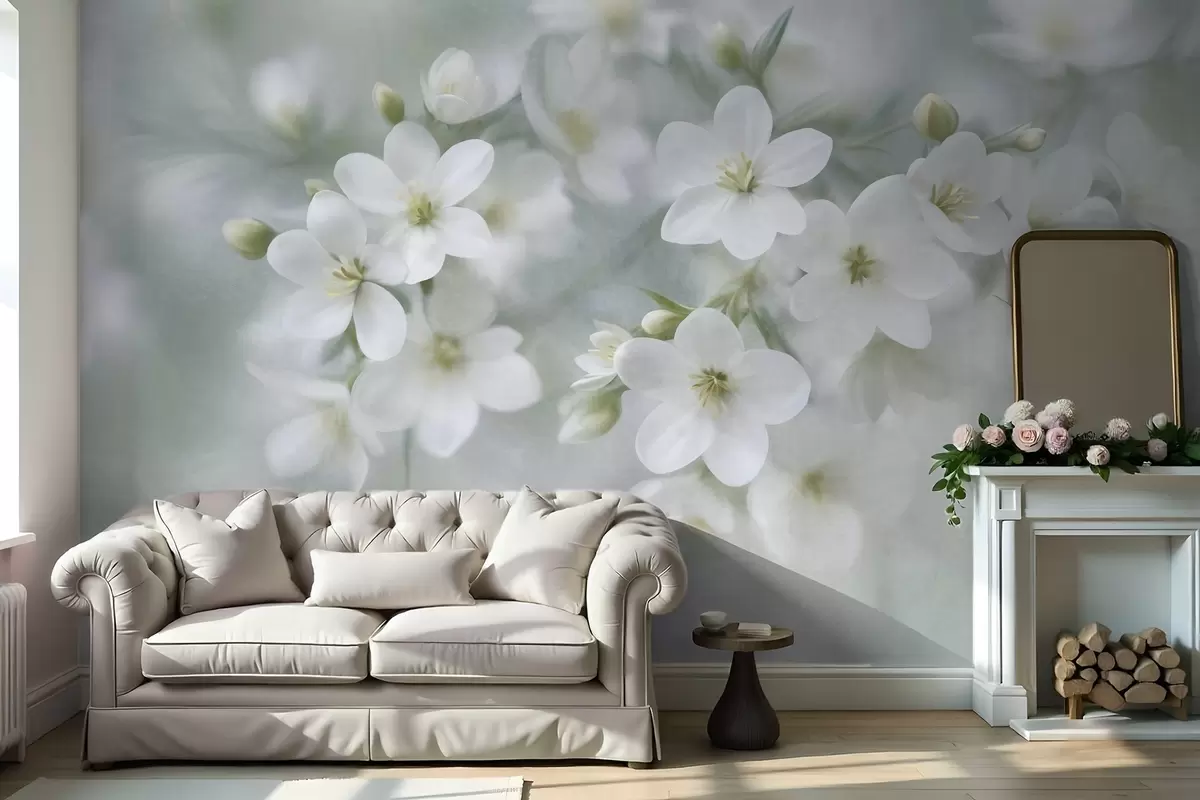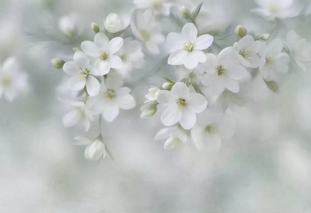 Fototapet Flori albe cu textură delicată, estompate ușor în fundal Nr. w09759