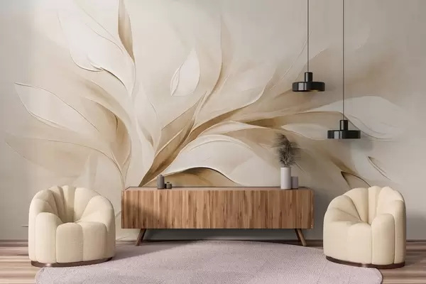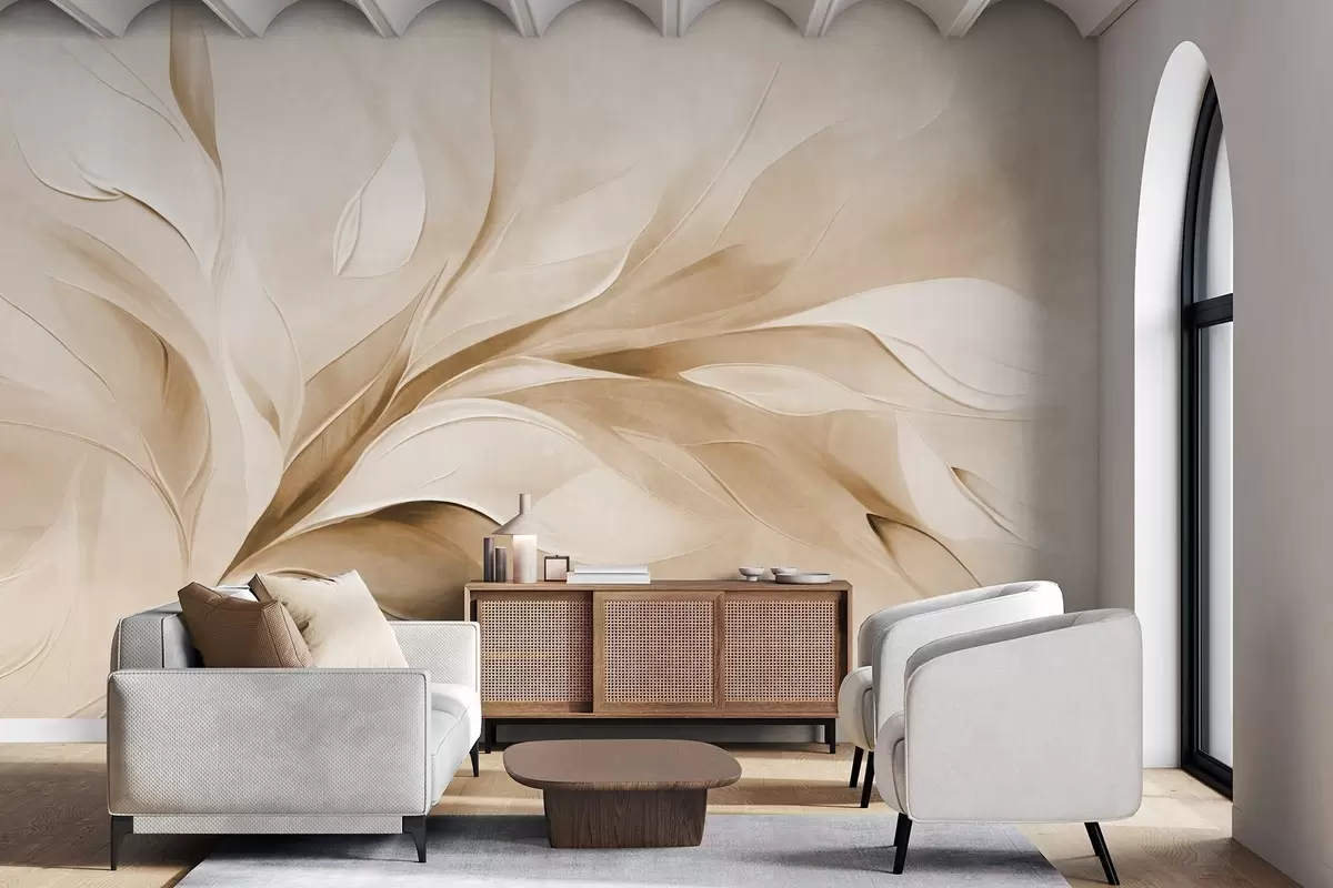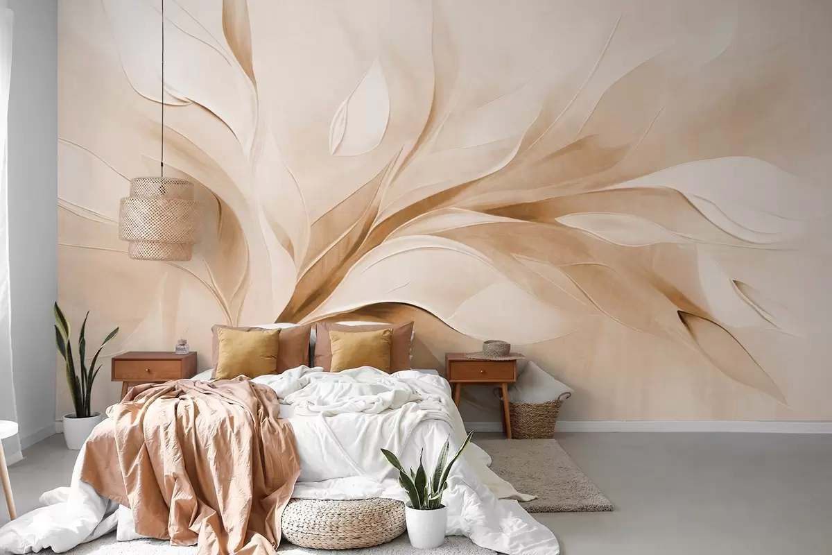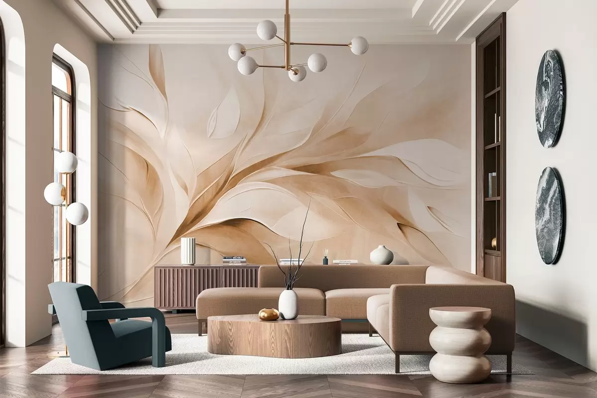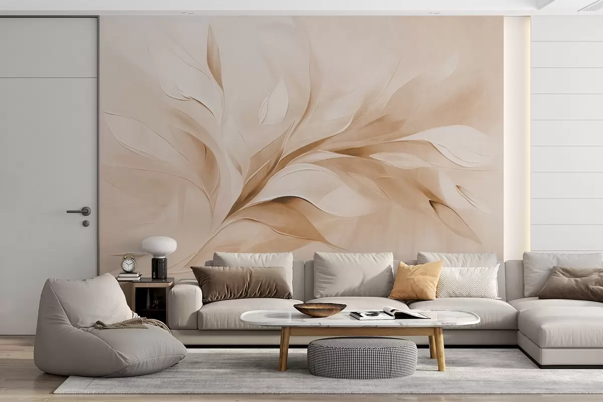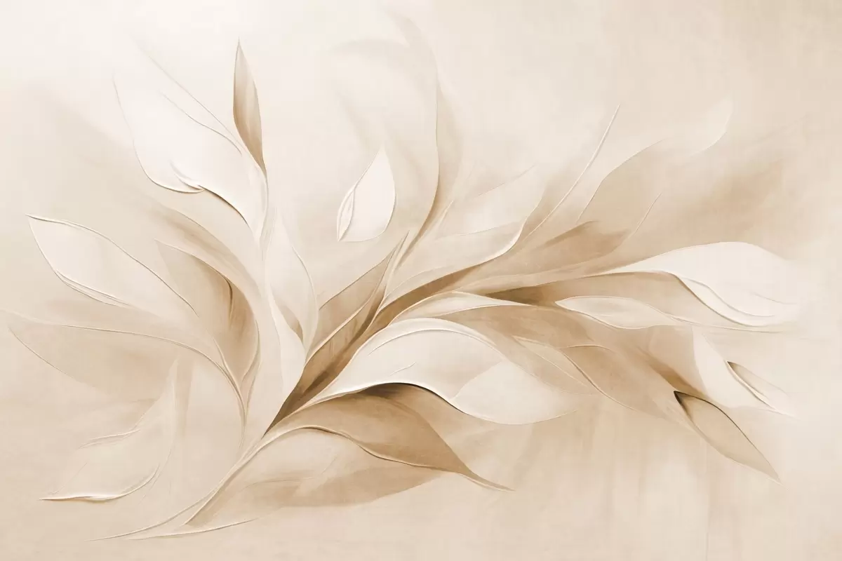 Fototapet Stil pictural abstract texturat, cu frunze bej și albe care curg Nr. w09765v1