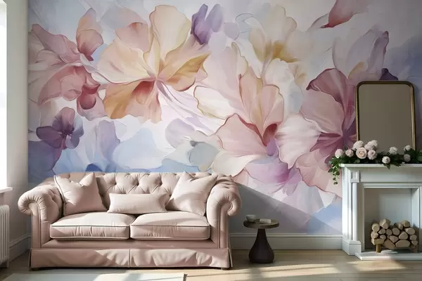 Fototapet Flori abstracte, fanteziste, în nuanțe de roz, piersică și lavandă, în stil pictural, artă texturată Nr. w09767