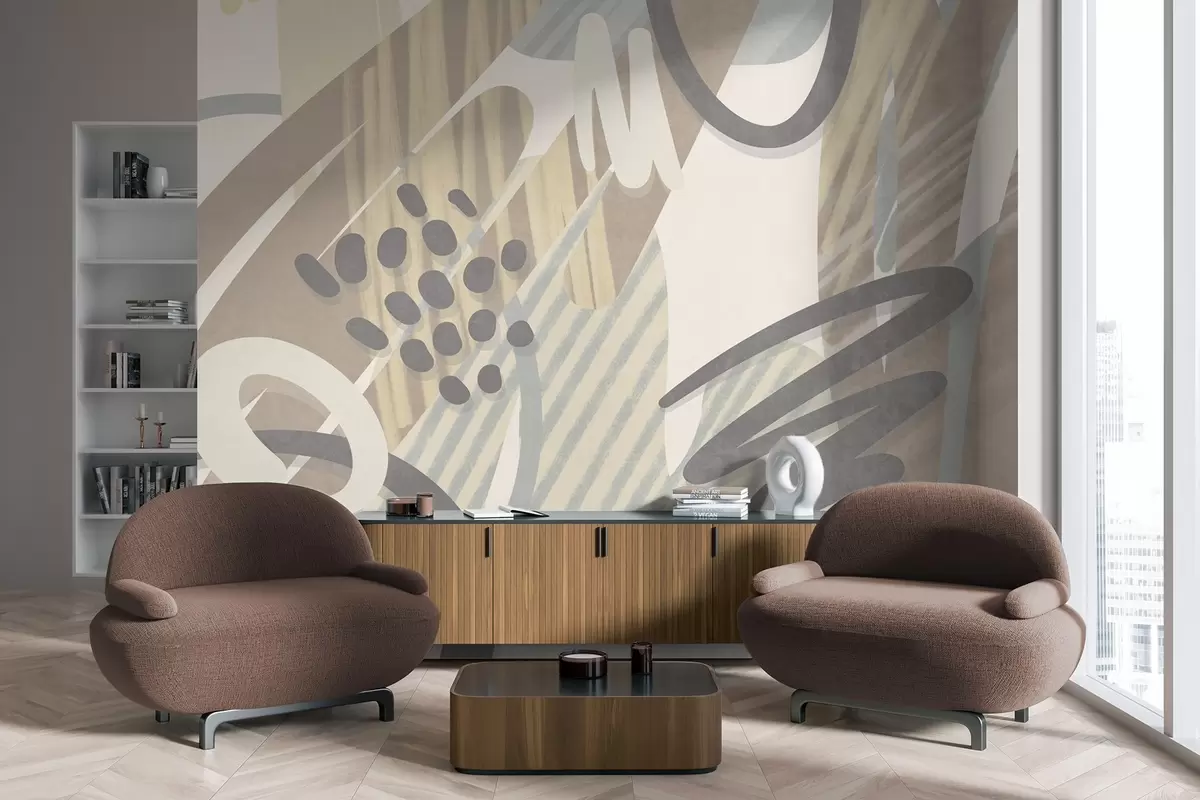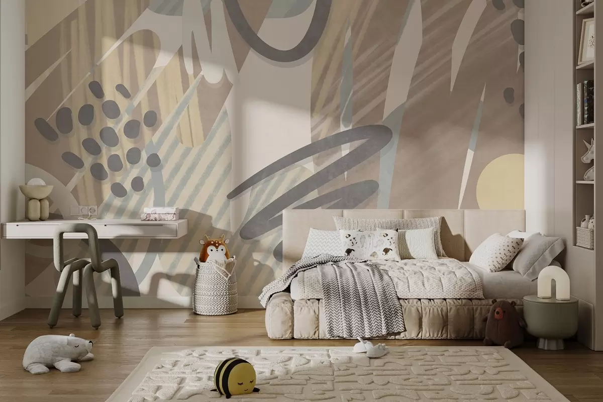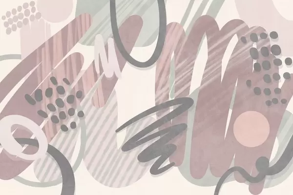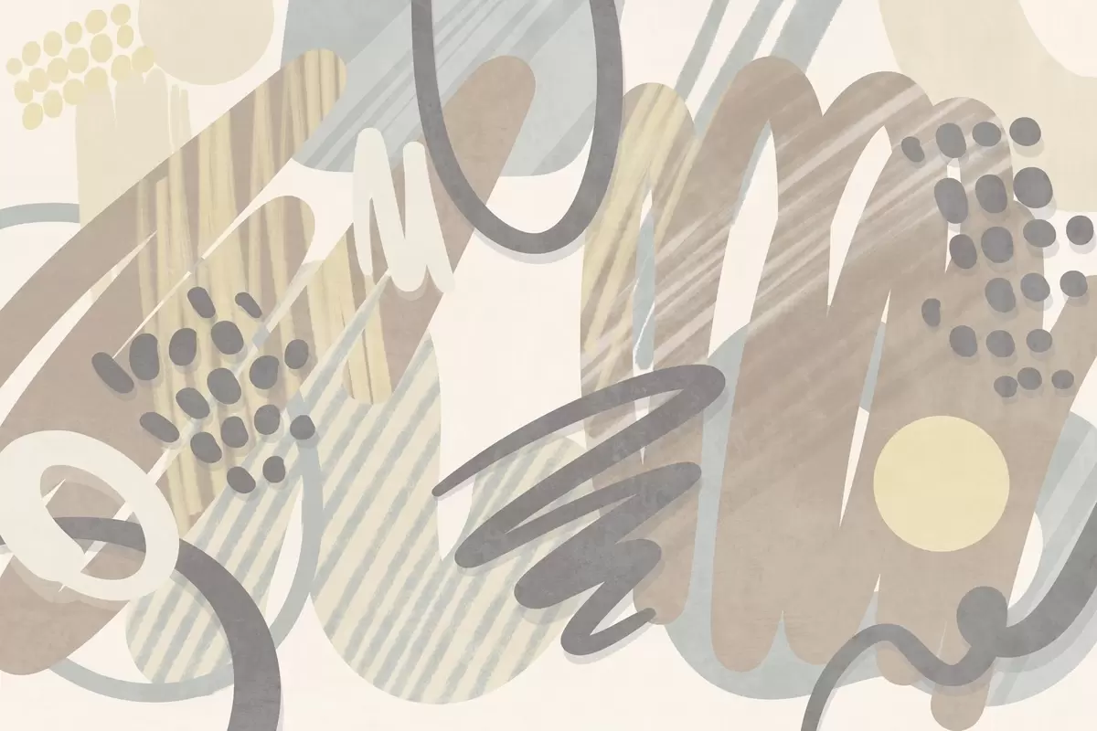 Fototapet Imprimeu abstract cu textură, format din forme organice, mâzgălituri și puncte, în nuanțe pastelate discrete Nr. w09774