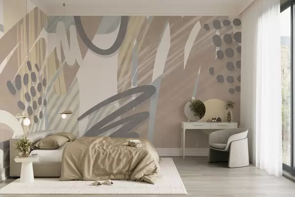 Fototapet Imprimeu abstract cu textură, format din forme organice, mâzgălituri și puncte, în nuanțe pastelate discrete Nr. w09774
