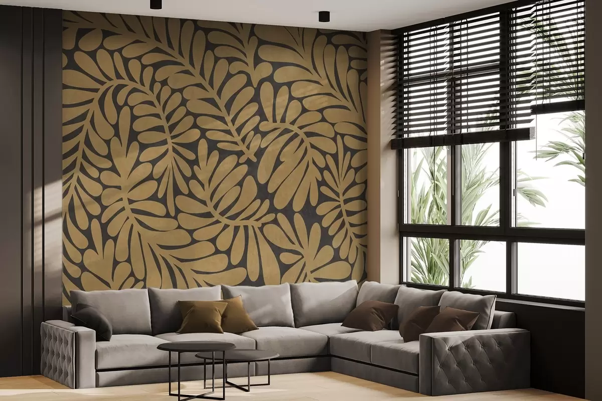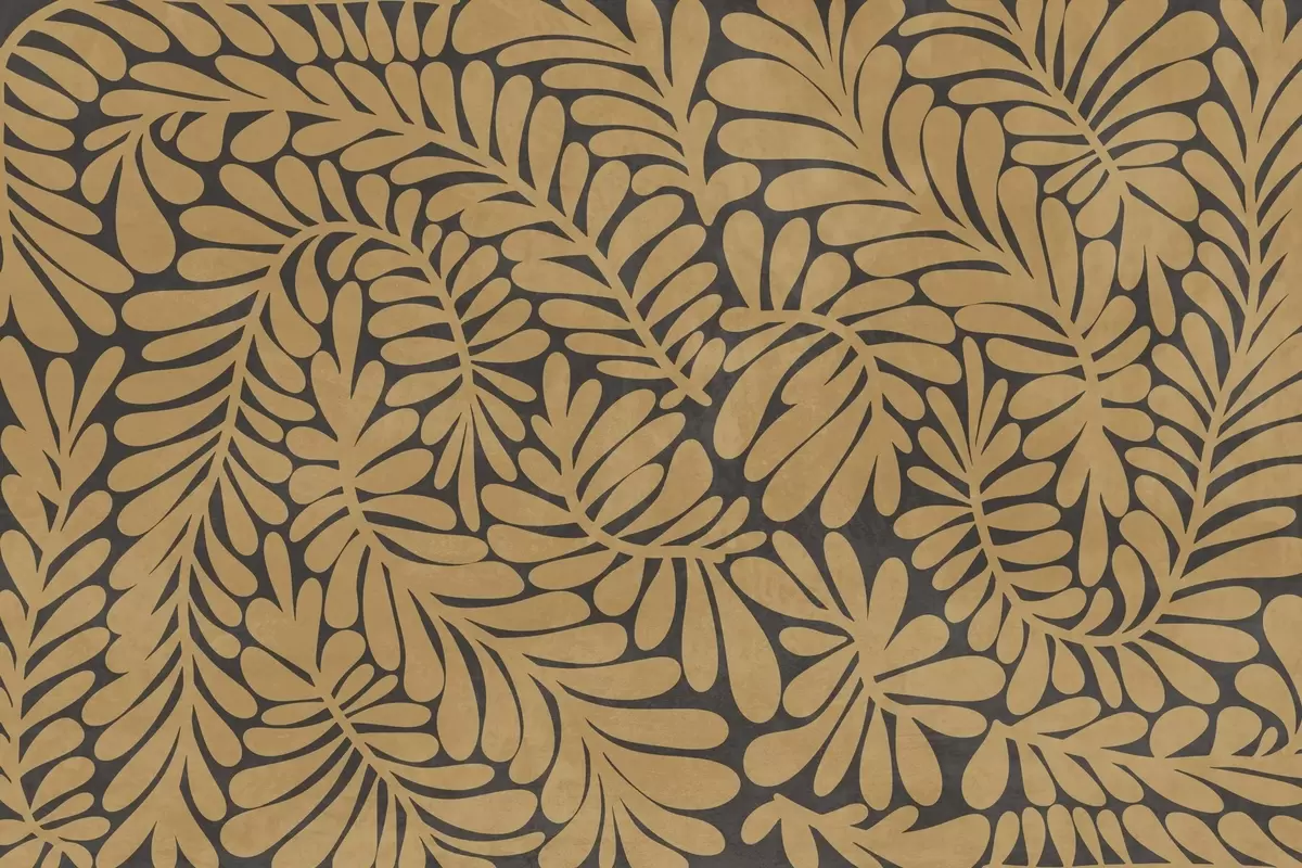 Fototapet Frunze galbene muștar stilizate pe un fundal gri închis, lucrare artistică cu textură Nr. w09775