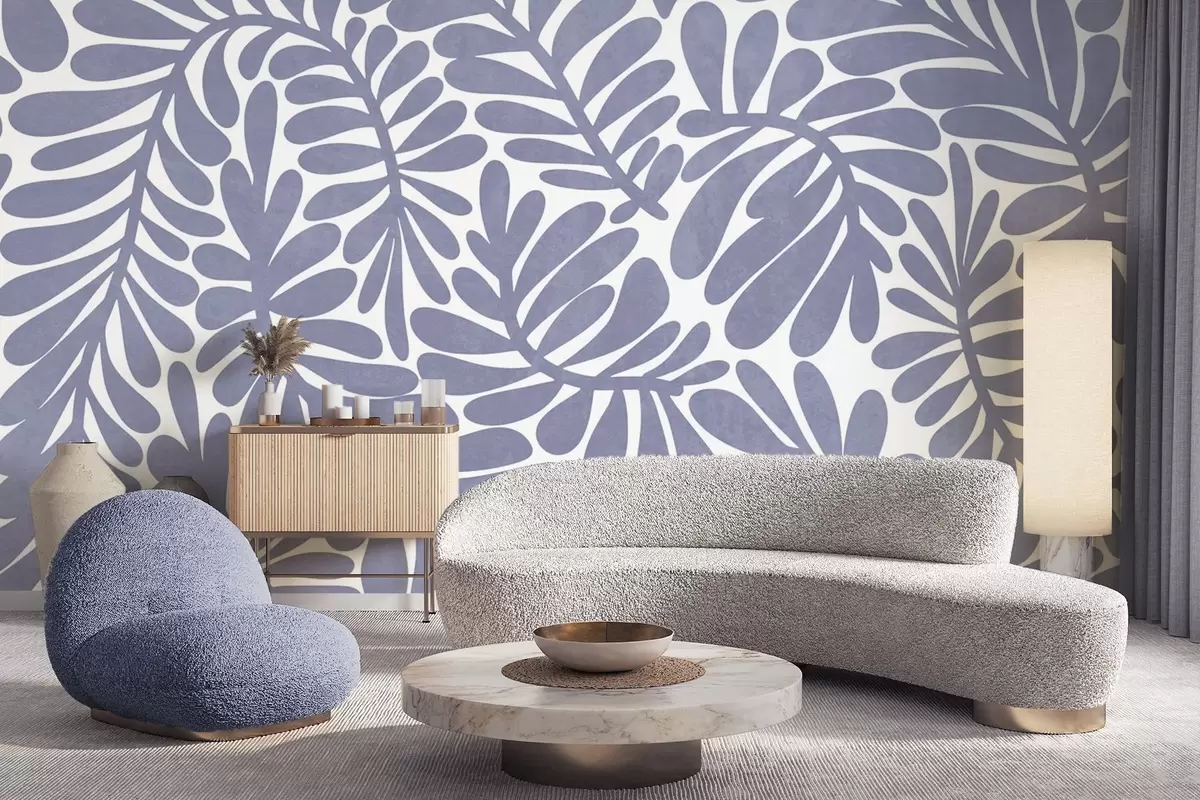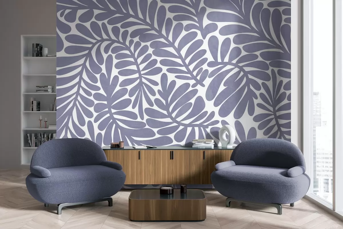 Fototapet Frunze albastru deschis stilizate pe un fundal deschis, ilustrație cu textură Nr. w09775v1