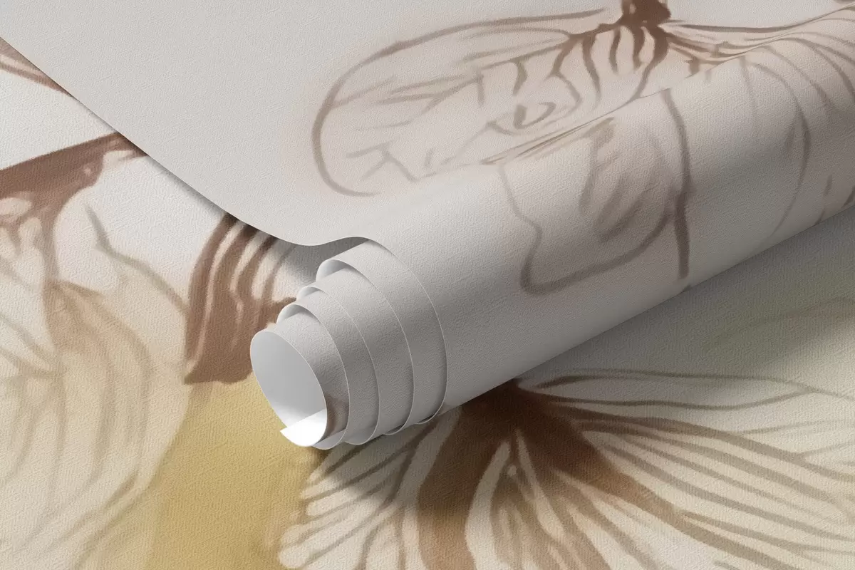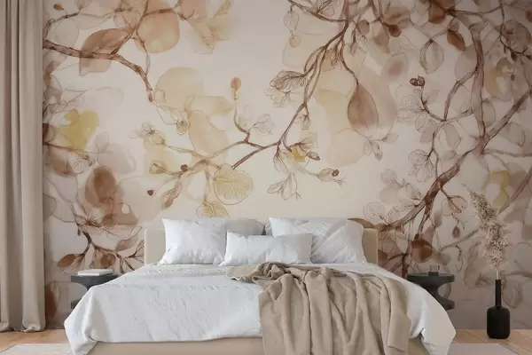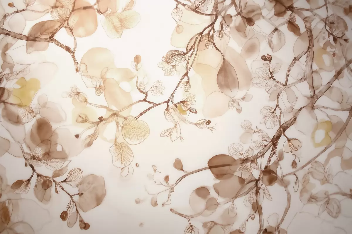 Fototapet Ramuri aerisite, suspendate, în nuanțe de bej, în stil acuarelă Nr. w09795
